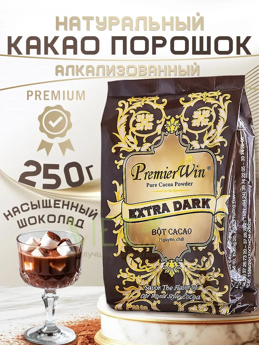 Как-порошок EXTRA DARK - это 100% натуральный тёмный как высокого качества. Изготовлен из 100% натуральных как бобов. Имеет благородный тёмный цвет, яркий аромат и насыщенный вкус. В Как-порошке содержатся полезные микроэлементы. Из-за высокого содержания магния и железа, как способствует укреплению костной системы всего организма. Как богато содержанием бета-каротина, фолиевой кислоты, фтора, кальция и калия. В состав как входят витамины А, В, РР, Е. Пить как можно как холодным, так и горячим. Чтобы приготовить горячий как, рекомендуем использовать 2 чайные ложки как-порошка EXTRA DARK на 75 мл горячей воды (или, по желанию, молока). Для приготовления холодного как используйте 1 чайную ложку как-порошка на 75 мл. Можете дополнить готовый как льдом или сгущённым молоком. Не требует варки, достаточно тщательно перемешать с жидкостью до исчезновения комочков. Как из Вьетнама экономичнее в расходе благодаря 100% натуральности и насыщенности вкуса