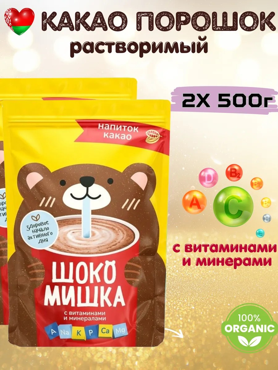 Какао шокомишка— это 100% натуральный состав. В нашем какао порошке нет генетически модифицированных организмов (ГМО), красителей и консервантов. Мы заботимся о вашем здоровье и предлагаем только качественные продукты, созданные из натуральных ингредиентов. Такой подход делает какао не только безопасным, но и полезным для организма.Какао-порошок богат витаминами и минералами, которые необходимы для поддержания здоровья. Он содержит магний, калий, железо, а также антиоксиданты, которые помогают укрепить иммунитет и поддерживать бодрствующее состояние. Регулярное употребление какао может зарядить вас энергией на весь день и улучшить настроение благодаря содержанию серотонина — гормона счастья.