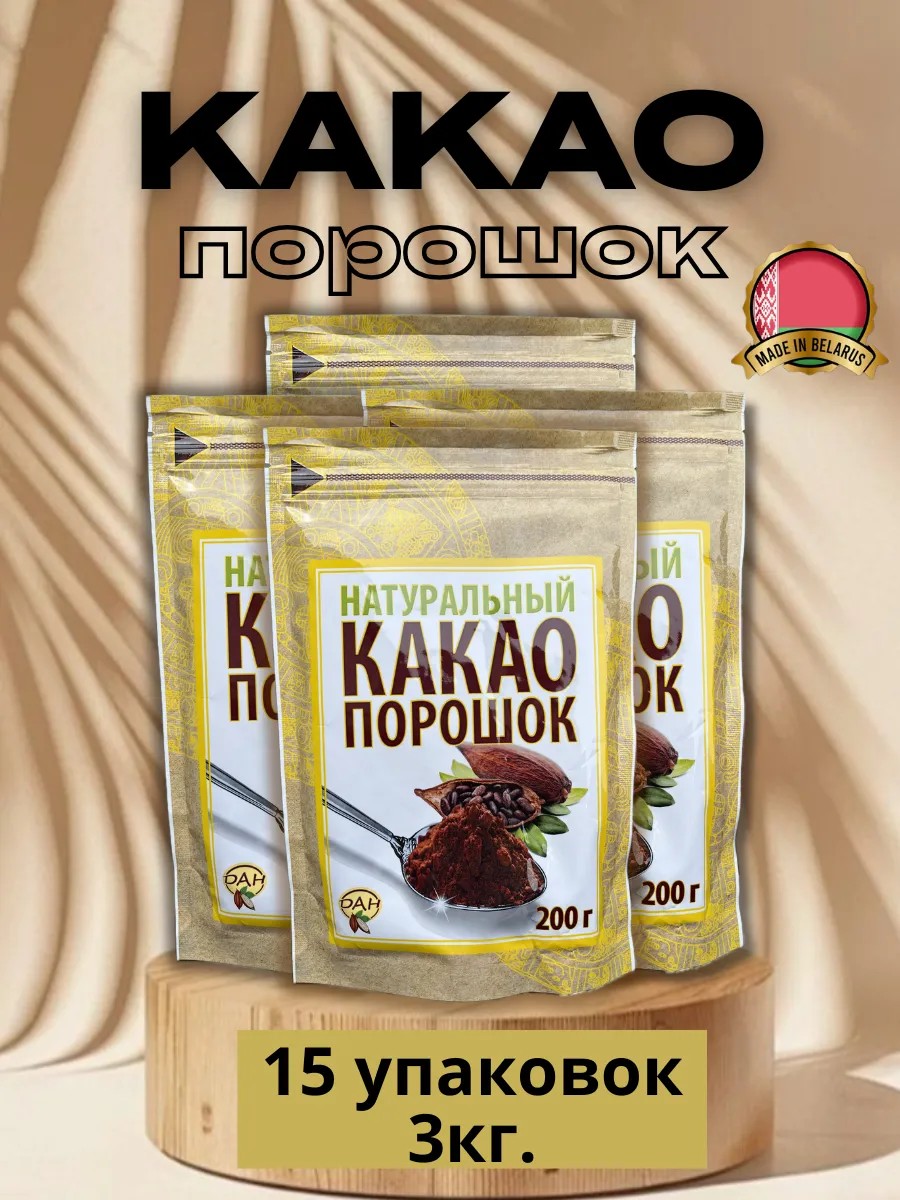 Какао порошок натуральный без сахара 15 шт по 200гр