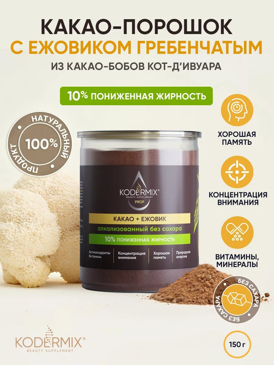 Какао натуральный алкализованный с ежовиком 150г KODERMIX