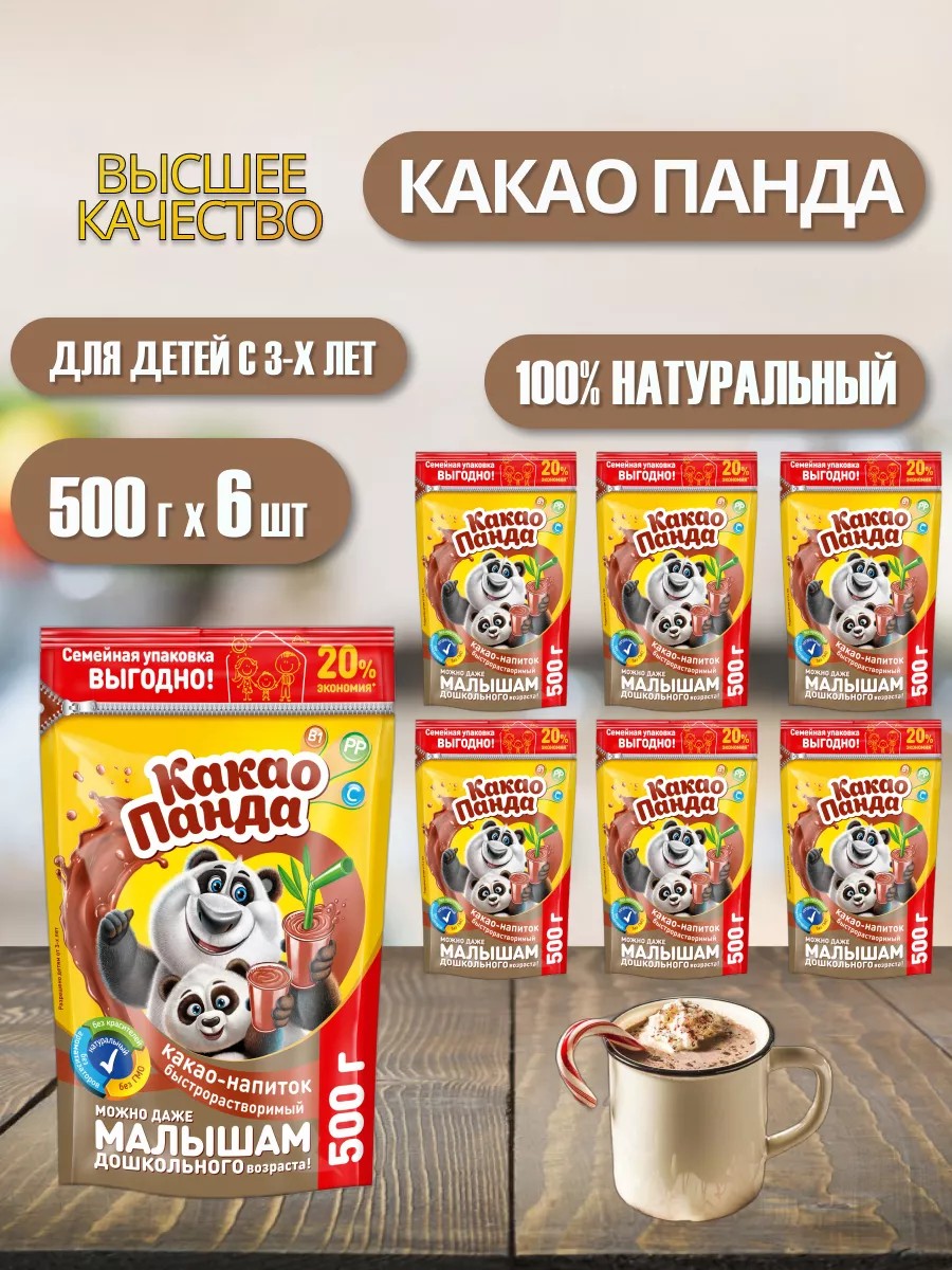КАКАО ПАНДА Какао порошок натуральный 500 г 6 шт