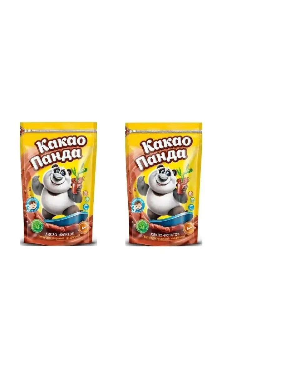 Комплект из 2 упаковок общим весом 500 гр. Какао "Панда" растворимый.Натуральный какао-напиток высшего качества, витаминизированный моментального приготовления. Вкусный напиток для взрослых и детей. Разрешен детям от 3-х лет.