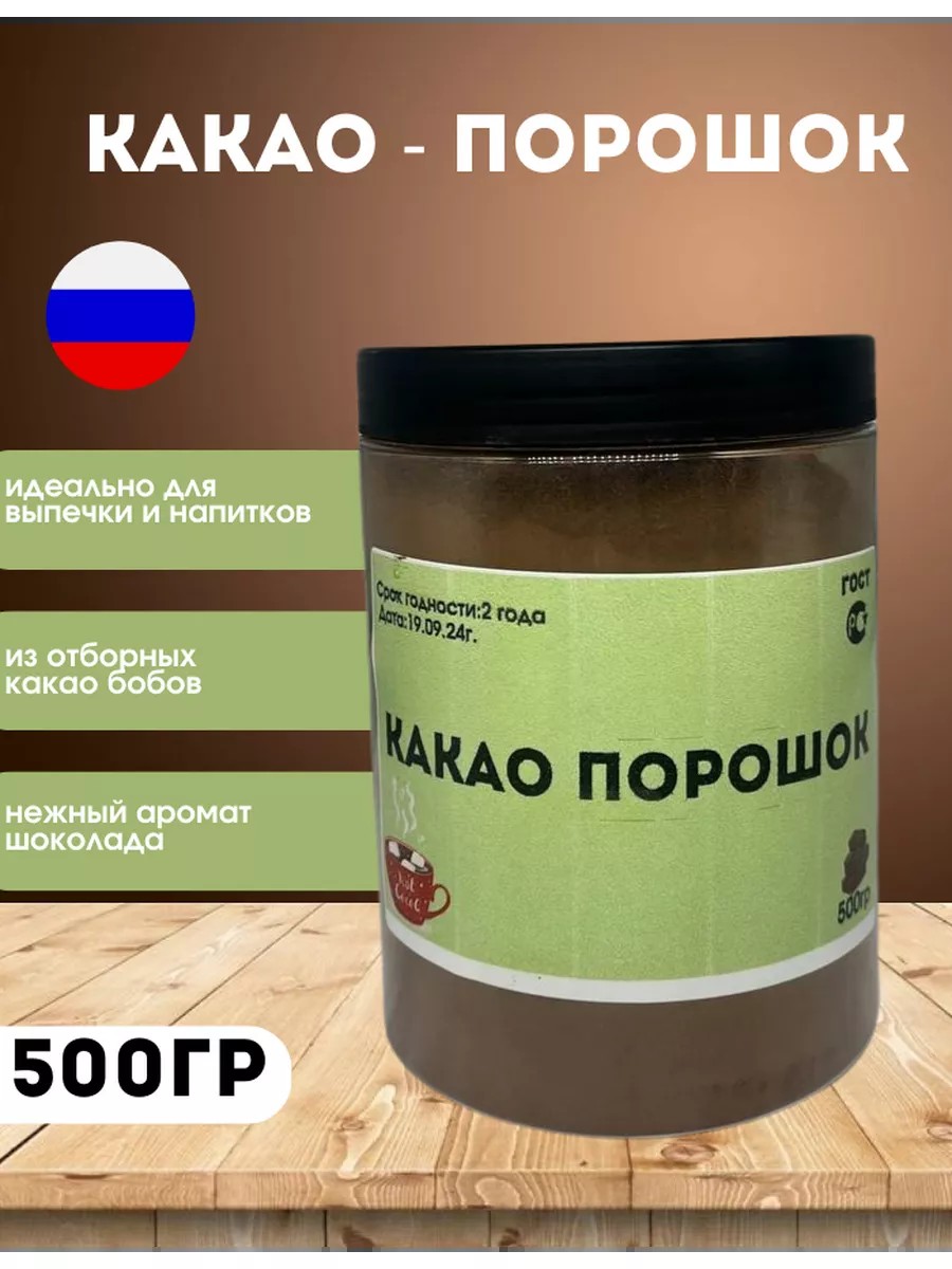 Instant cocoa powder is a product obtained after grinding cocoa beans. It makes delicious, warming drinks. It is also used as an additive in confectionery. This naturally alkalized product is available in 500-gram bottles. Made in Russia. It has a beautiful, rich brown color, a distinct aroma, and a rich, intense, and deep flavor. It dissolves easily without leaving a residue and pairs well with other ingredients. It is resistant to high temperatures and has a long shelf life. It does not contain preservatives or artificial additives. To obtain a fine grind, the beans are crushed. It is rich in calcium and iron. Antioxidants protect the body, and B vitamins are essential for normal functioning. It does not lose its flavor over time. It helps normalize blood pressure and cardiovascular health. It strengthens and stimulates hair growth, and combats bad moods and stress. It has a positive effect on the immune system and improves digestion. This food product is often used in chocolate making. It is added to ice cream, butter, and various fillings. In baked goods and desserts, it imparts a soft chocolate flavor and a juicy, slightly moist texture. It is enjoyed by all adults and children, either on its own or with the addition of milk, sugar, or other sweets. Cocoa powder is perfect for a ready-to-eat breakfast or as a mini gift. It can complement any delicious gift set, perfect for family and friends, as well as pastry chefs, for birthdays or New Years, March 8th or February 14th, or any children's event.