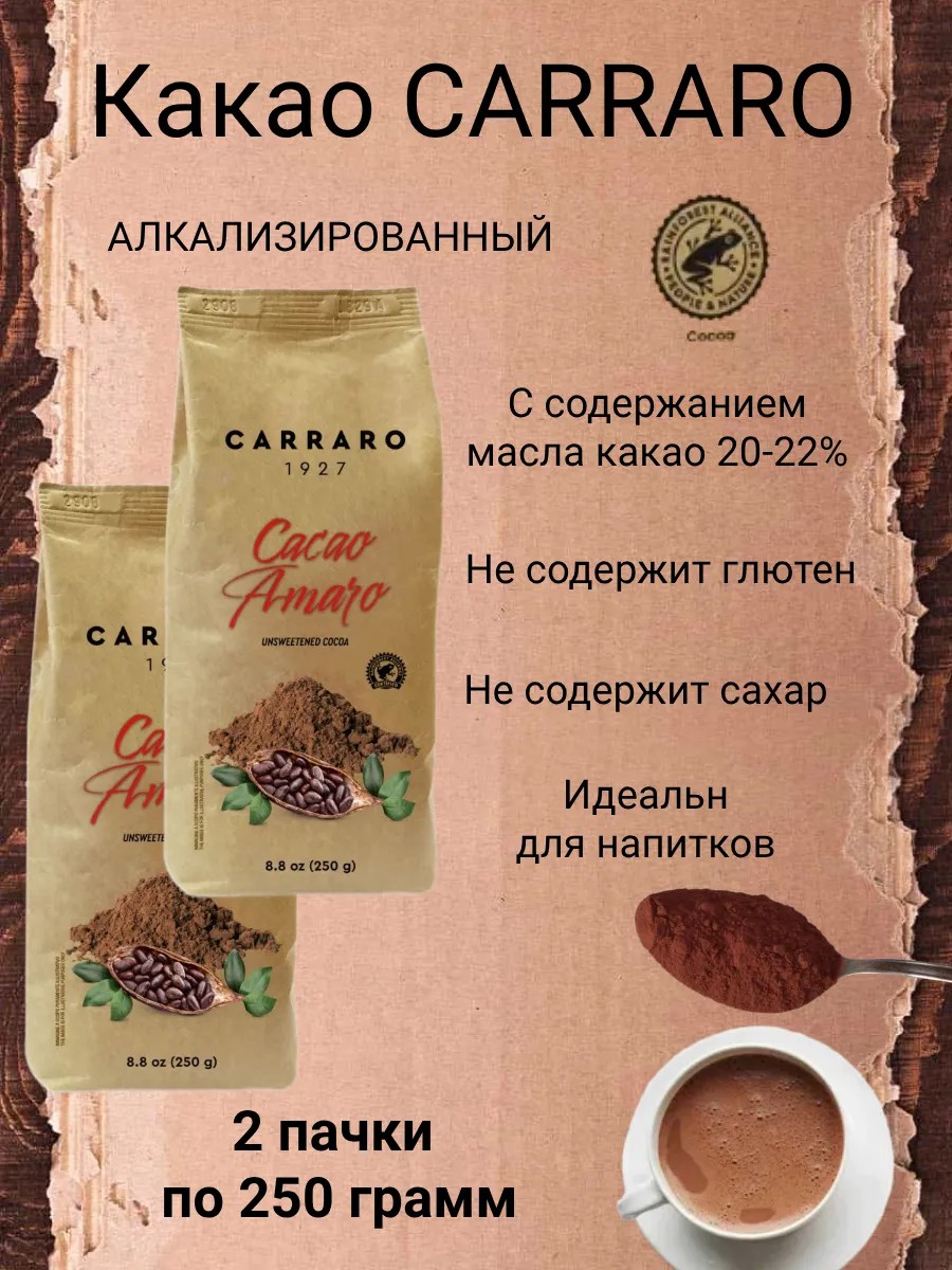Carraro Какао-порошок Cаrraro 250 грамм, пакет 2 штуки