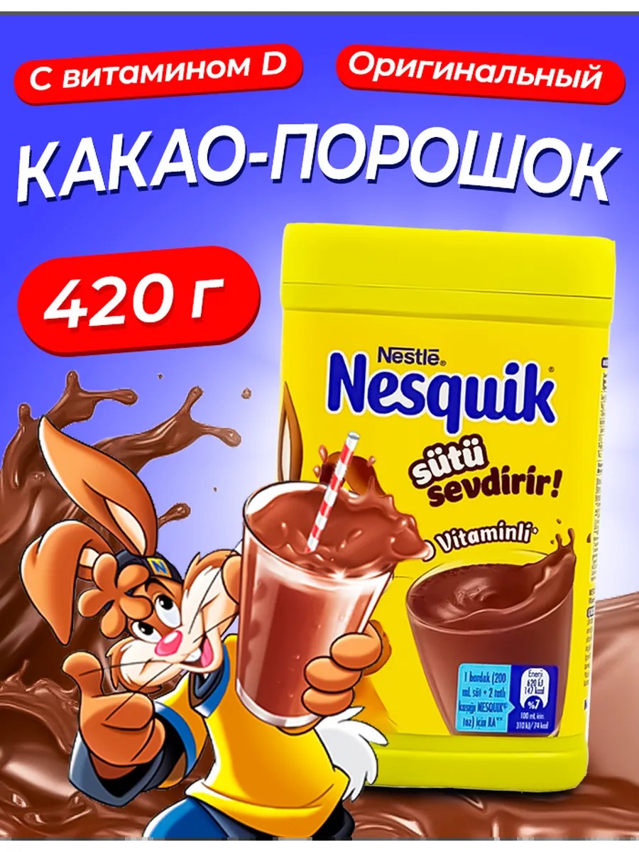 Представляем вам супервкусный и полезный напиток для детей, который согреет малыша в любое время года. Это оригинальное классическое какао Nesquik турецкого производства от компании Nestle. Какао - порошок сделан из натуральных какао - бобов отборного качества. В составе напитка нет искусственных ароматизаторов, консервантов и вредных добавок. Ингредиент напитка включают натуральный ванилин и корицу, которые дополняют шоколадный вкус какао. Напиток витаминизированный, поэтому он еще и полезен для детского здоровья. Несквик быстро растворяется как в горячем, так и в холодном молоке, не требует кипячения. Это делает его универсальным и легким в приготовлении. Как основу для напитка можно использовать не только молоко, но и сливки любой жирности. Сахар в составе делает какао еще вкуснее, а также заряжает энергией и повышает пищевую ценность напитка. Это идеальный выбор для детского питания в морозные зимние дни. Растворимое какао подходит не только для мальчиков и девочек. Его можно пить на десерт всей семьей, ведь вкус понравится и взрослым сладкоежкам. Кружка горячего ароматного напитка - прекрасное средство для защиты от простуды в весеннее или осеннее время. Растворимый напиток на основе какао доступен в упаковках различных объемов: мягких пакетиках по 400 г и банках (больших и маленьких) по 200 г, 420 г, 900 г и 1 кг. Емкости подходят для хранения напитка. Маленькая баночка подойдет для дружеской встречи или романтического вечера двоих влюбленных. Большой пачки напитка в виде порошка хватит на все лето. На основе элитного органического порошка какао можно готовить молочные напитки на его основе множеством способов. Ложку шоколадного порошка также можно добавлять в коктейль, смузи и другой напиток для улучшения настроения и поднятия иммунитета, детского мужского или женского. Поэтому продукт незаменим для кондитера и каждого, кто увлекается кулинарией. Вы сможете готовить сладости с содержанием какао, использовать его как посыпку, и даже использовать для правильного питания. Баночка быстрорастворимого сухого какао - прекрасный подарок для мужчины, женщины, ребенка. Порадуйте любимого человека сюрпризом - баночкой ароматного согревающего напитка оригинальной рецептуры. Подарите Nesquik маме, папе, подруге, дочке, сыну, девушке, молодому человеку, коллеге, племяннику или племяннице на любой праздник или без повода. Заказывайте напиток сейчас и наслаждайтесь вкусом и ароматом нашего какао!