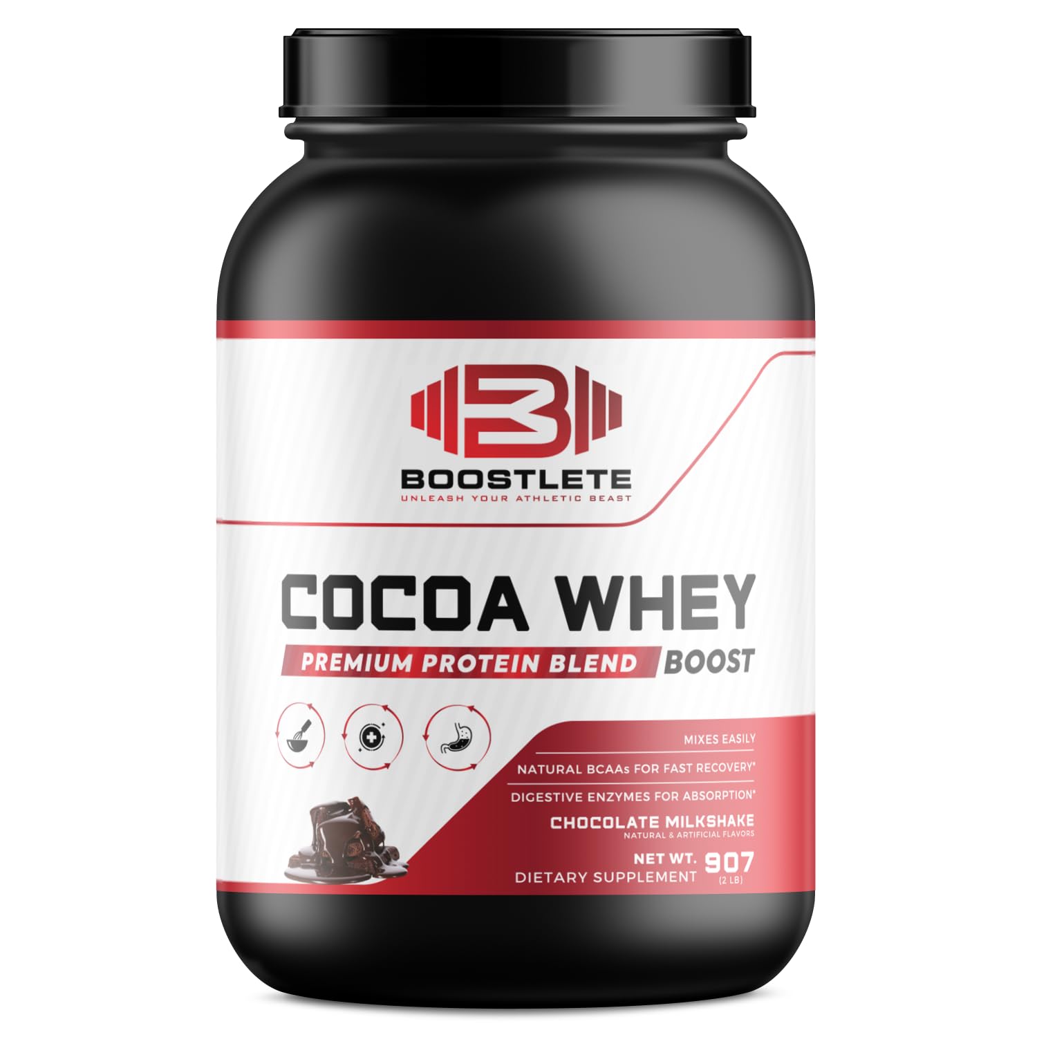 COCOA WHEY Protein Powder delivers premium quality whey protein concentrate and isolate to help you reach your fitness and health goals. Our delicious chocolate-flavored formula rapidly absorbs into your body, providing essential amino acids to enhance muscle growth, support faster recovery, boost immunity, and increase energy levels. Made from carefully selected ingredients, this protein powder is third-party tested for purity and potency, ensuring optimal effectiveness. Free from fillers, contaminants, and artificial additives, COCOA WHEY is your go-to protein solution for superior nutrition and taste. Bullet Points: ✓ High-Quality Whey Protein Blend: Combines whey protein concentrate and isolate for maximum muscle growth and recovery support. ✓ Supports Muscle Strength Recovery: Helps build lean muscle, enhances recovery after workouts, and prevents muscle breakdown. ✓ Immune Antioxidant Support: Rich in glutathione, a powerful antioxidant, promoting overall immune health and vitality. ✓ Delicious Chocolate Flavor: Mixes easily into your favorite beverage for a smooth, tasty protein shake experience. ✓ Clean Pure Ingredients: Non-GMO, free from fillers and toxins, third-party tested, GMP certified, and made in an FDA-registered USA facility. Suggested Use: Mix one (1) large scoop with 8–16 oz. of cold water or milk. Blend until smooth. Adjust liquid to your desired consistency. Enjoy 1–2 servings daily. Always consult your healthcare provider before starting new supplements. Caution: Keep out of reach of children. Store in a cool, dry place. Consult with a physician prior to use if you have medical conditions, are pregnant, nursing, or taking medication. These statements have not been evaluated by the Food and Drug Administration. This product is not intended to diagnose, treat, cure, or prevent any disease.Clean Pure Ingredients: Non-GMO, free from fillers and toxins, third-party tested, GMP certified, and made in an FDA-registered USA facility. Delicious Chocolate Flavor: Mixes easily into your favorite beverage for a smooth, tasty protein shake experience. Immune Antioxidant Support: Rich in glutathione, a powerful antioxidant, promoting overall immune health and vitality. Supports Muscle Strength Recovery: Helps build lean muscle, enhances recovery after workouts, and prevents muscle breakdown. High-Quality Whey Protein Blend: Combines whey protein concentrate and isolate for maximum muscle growth and recovery support.