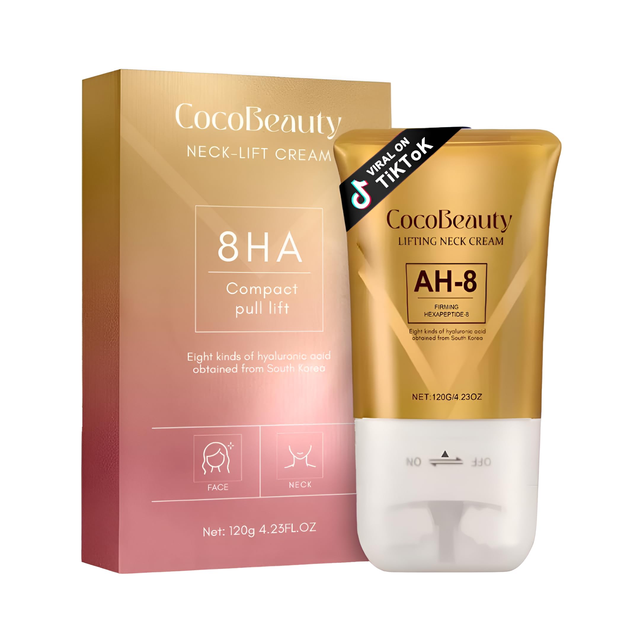 COCOBEAUTY AH-8 Neck Lift Cream With Roller - Firming & Lifting Cream for Neck and Skin Anti-Aging Treatment for Wrinkles and Sagging Smooth & Hydrate D collet Fast-Absorbing Formula