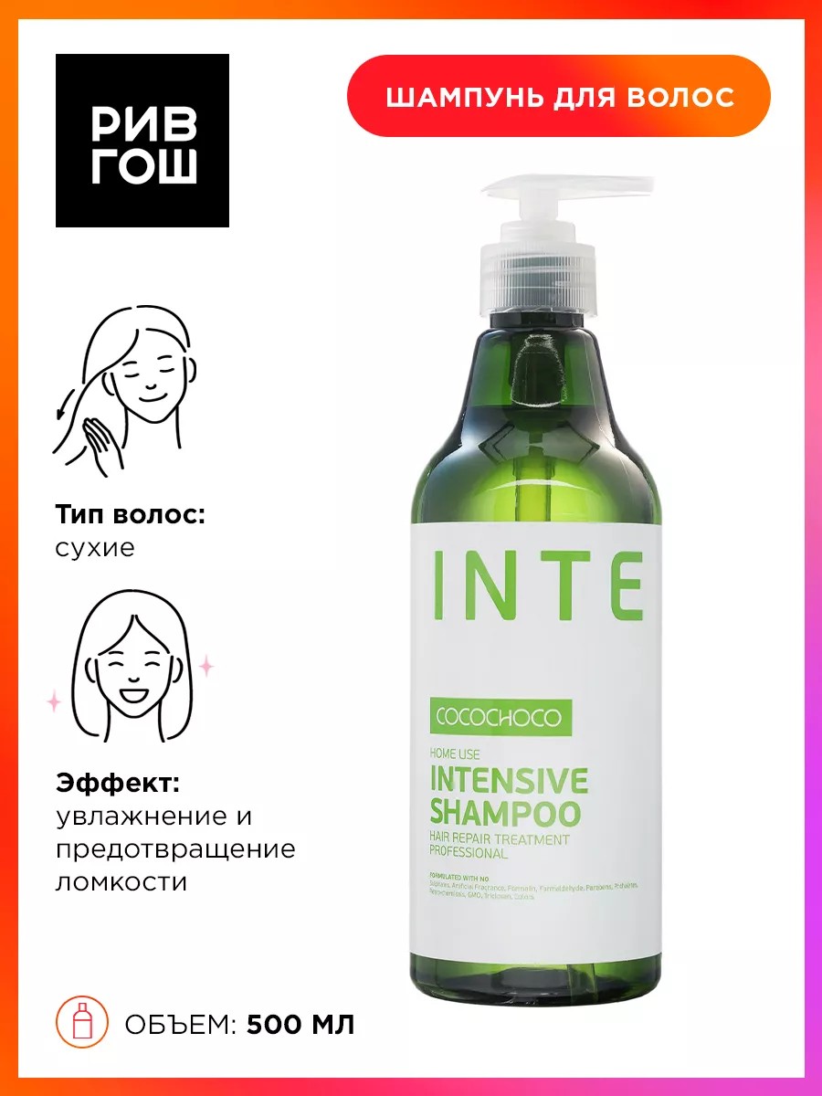 Шампунь Intensive Shampoo для интенсивного увлажнения и ухода за сухими и повреждёнными волосами. Глубоко проникает в структуру волоса, питает от корней до самых кончиков, устраняет и предотвращает ломкость, облегчает расчёсывание. Идеально подходит как средство ухода после процедуры кератинового восстановления волос. Активные компоненты: Keramimic. Натуральный кватернизированный кератин, технология биомиметики воссоздает материю волоса, восстанавливает полипиптидные цепочки, саморегулируемая формула. Mirustyle. Снижает пушистость, придает гладкость волосам, отлично работает как на прямых, так и на вьющихся волосах. Lustraplex.Интенсивный компонент глубокого действия, распутывает волосы и облегчает расчесывание, придает сияние и блеск. Шампунь для интенсивного увлажнения волос, 500 мл. У нас Вы всегда сможете подобрать женскую и мужскую парфюмерию, декоративную косметику, а так же уходовые средства для волос, тела и лица. РИВ ГОШ вдохновляет дарить подарки каждый день. Шампунь для волос это незаменимое средство в обиходе любого современного человека. Он обладает уникальной формулой, специально разработанной для увлажнения и укрепления ваших локонов. Богатый состав шампуня содержит качественные и активные ингредиенты, которые питают и восстанавливают локоны. Шампунь сделает ваши волосы более объемными и блестящими.