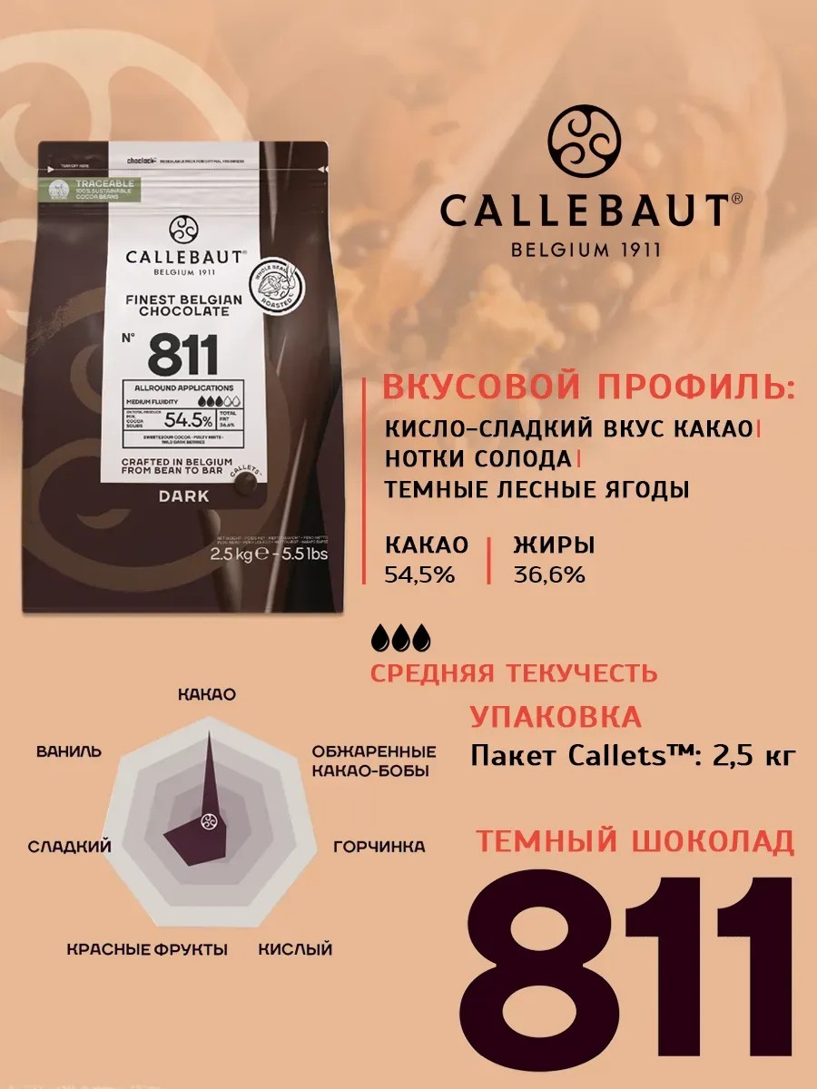 CocoEdge Шоколад кондитерский темный какао 54,5% 2,5кг