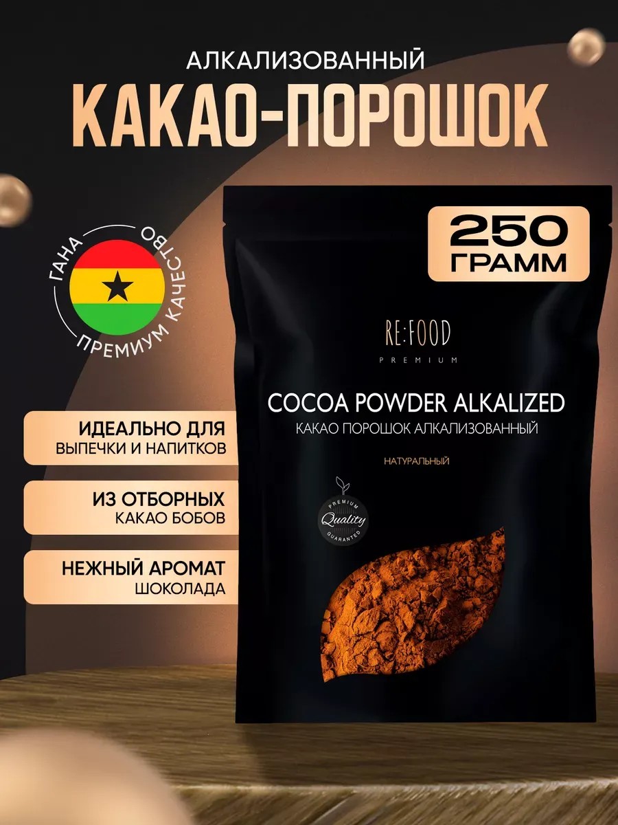 Натуральный алкализованный какао - это продукт, обработанный щелочью, благодаря которой какао-порошок лучше растворяется в молоке или других жидкостях, очищается от вредных микроорганизмов и приобретает более выраженный вкус и аромат. Натуральный алкализованный какао-порошок мелкого помола без добавок и примесей несет в себе настоящую пользу природы. В состав алкализованного какао-порошка входят магний, кальций, сера, цинк, калий, железо, группа витаминов B, клетчатка и олеиновая кислота, природные антиоксиданты. К полезным свойствам какао можно отнести понижение давления, помощь в борьбе со стрессом, снижение риска возникновения анемии, улучшение памяти, благоприятное воздействие на работу сердечно-сосудистой системы и улучшение настроения.Именно алкализованный какао-порошок необязательно варить, достаточно просто залить горячей жидкостью. Поэтому он идеально подходит для приготовления классического домашнего какао и других напитков, десертов, выпечки и кондитерских изделий.