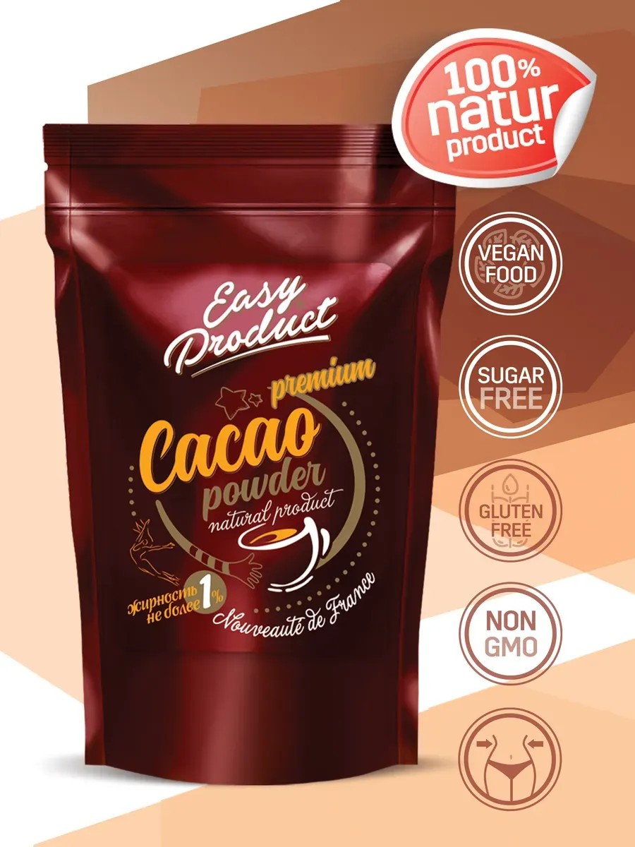 100% Какао порошок натуральный диетический обезжиренный без добавления какао веллы! Способствует похудению. Если Вы следите за фигурой и здоровьем, тогда это Ваш продукт. Он прекрасно подходит для кондитеров. Готовьте диетические и низкокалорийные десерты, горячие напитки, мороженое, шоколадную выпечку, безе, эклеры, торты, крем, глазурь и другие кондитерские изделия. Какао порошок Easy Product с содержанием жира не более одного процента производство совместно с фабриками шоколада в Бельгии и Франции. Ингредиент относится к классу Премиум, имеет яркий, насыщенный вкус, интенсивный аромат и огромное количество полезных микроэлементов. Напиток является растворимым. Благодаря тонкому помолу прекрасно растворяется в воде. Изготавливается из какао бобов высшего сорта путем инновационной технологии отделения какао масла. Благодаря особой обработке и процессу алкализации достигается высокая распускаемость, способность к смачиванию и быстрому диспергированию в воде. Продукт станет идеальным подарком для родных и близких, взрослых и детей которые следят за своим здоровьем. Наш cacao станет недорогим и бюджетным подарком в праздники. Не содержит глютен. С уважением бренд Easy Product Company. Более подробно с другими нашими продуктами можно ознакомиться в нашем магазине. С уважением команда Easy Product Company!