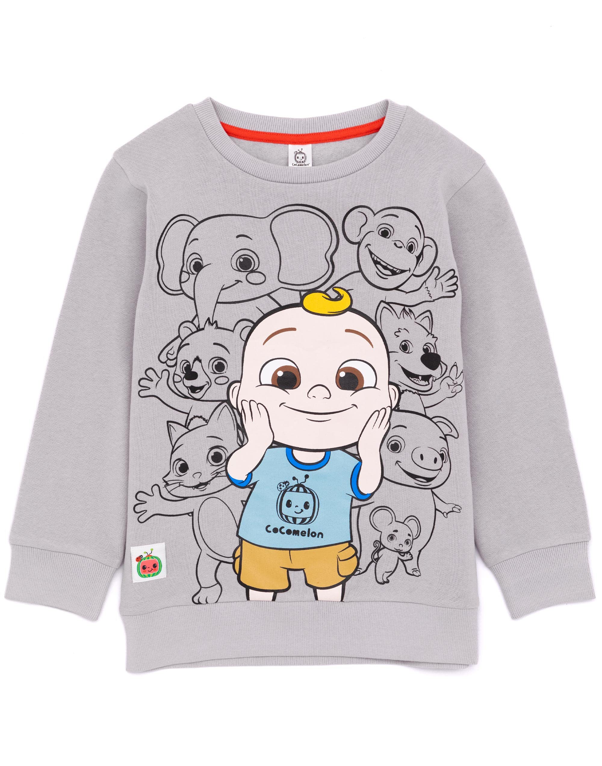 Cocomelon Sweatshirt Kids Babies Toddlers Animal Characters Song Grey Jumper