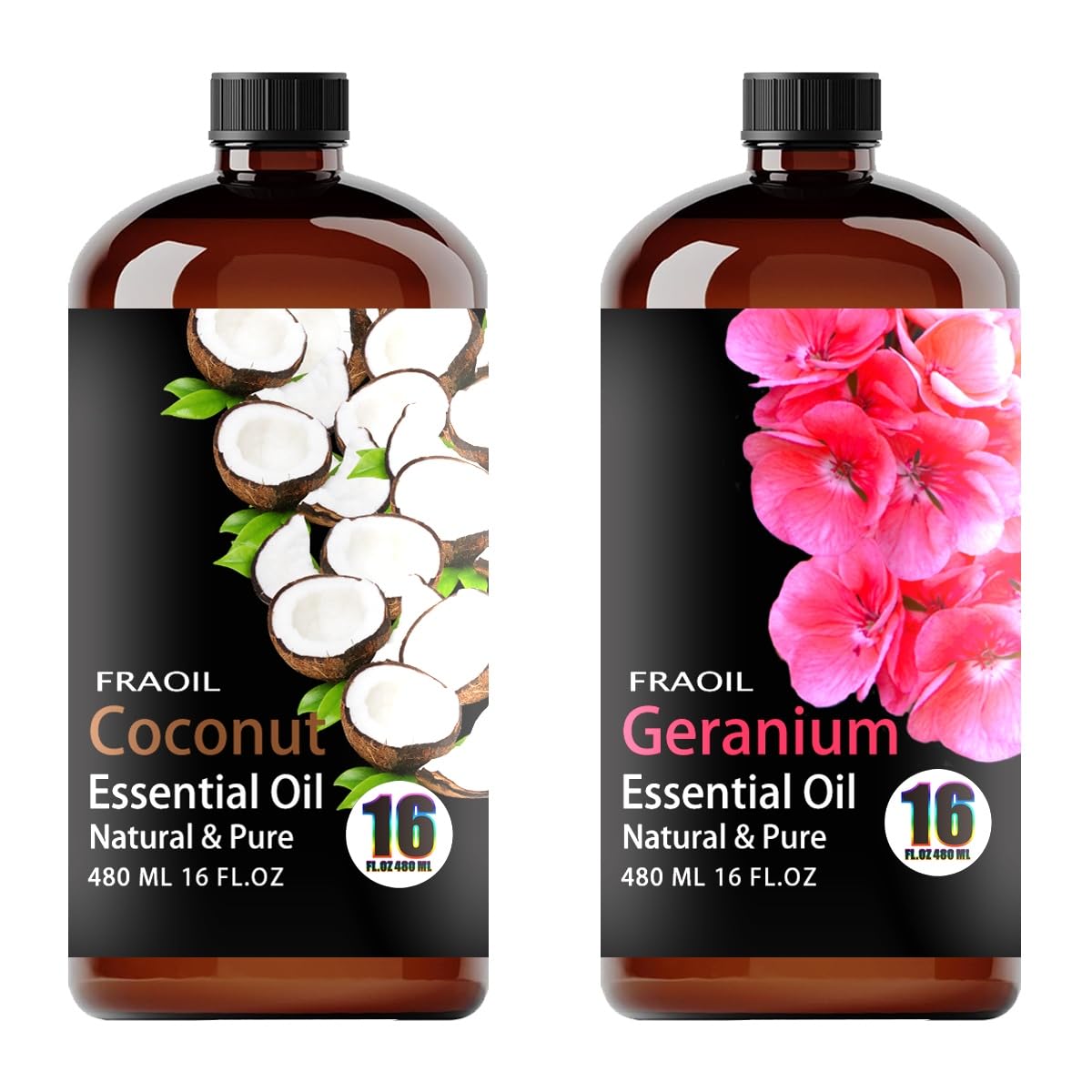 Welcome To FRAOIL Essential Oil, Coconut Essential Oil 16 Fl Oz and Geranium Essential Oil 16 Fl Oz For Diffuser, Humidifier, Yoga, Cleaning, DIY Candle, Soap Making. Whether You Need Coconut Essential Oil and Geranium Essential Oil Or Other Essential Oils, FRAOIL Has The Right Essential Oil For You. We Aim To Supply High-Quality Essential Oils At Competitive Rates. Thousands Of Users Have Enjoyed FRAOIL Essential Oil. If You Have Any Questions About Our Essential Oils, Please Feel Free To Contact Us.