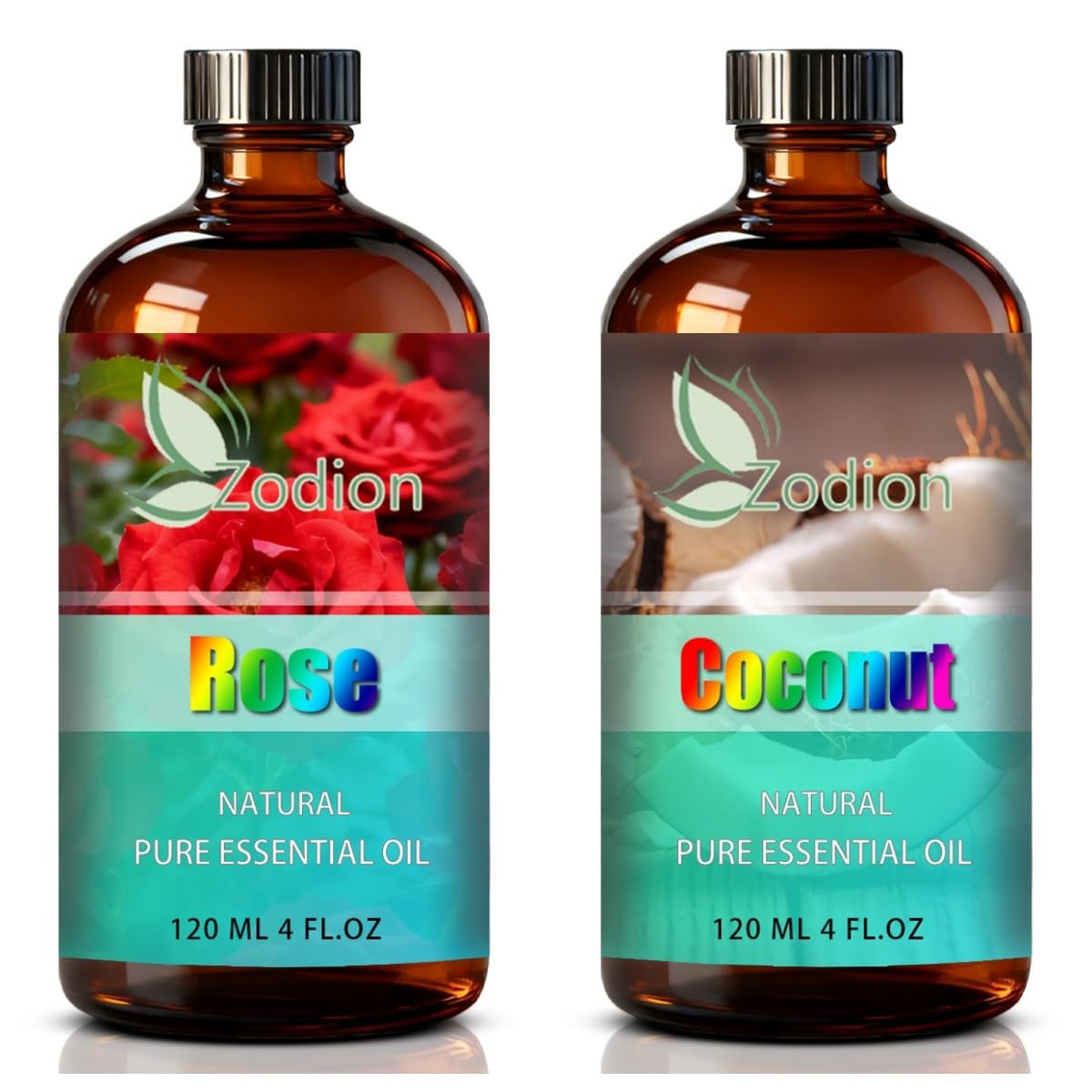 Quality Customer Care- ZODION Essential Oil delivers pure, long-lasting aroma with premium quality. Our responsive customer support ensures a reliable and satisfying experience. Home Fragrance, Bath Self-Care - Coconut and Rose Essential Oil brings a cozy, inviting scent to baths, bedrooms, or living rooms. When diluted, it can be added to baths, lotions, or massages, enhancing daily rituals and promoting calm and rejuvenation. DIY Creative Fragrance Projects - Use Coconut and Rose Essential Oil for DIY candles, soaps, bath bombs, perfumes, or custom essential oil blends. Ideal for hobbyists, wellness enthusiasts, and creative home fragrance projects. Diffuser Use Aromatherapy - Perfect for diffusers, humidifiers, or room sprays, this Coconut and Rose essential oil purifies the air, enhances focus, and promotes calm and relaxation during yoga, meditation, spa, or wellness sessions. 100 Pure Coconut Rose Essential Oil - This 4 Fl Oz 120 ml essential oil is made for everyday aromatic use at home or in the office. Used as a versatile fragrance oil, it energizes the senses, uplifts mood, and creates a cheerful, inviting atmosphere in any space.