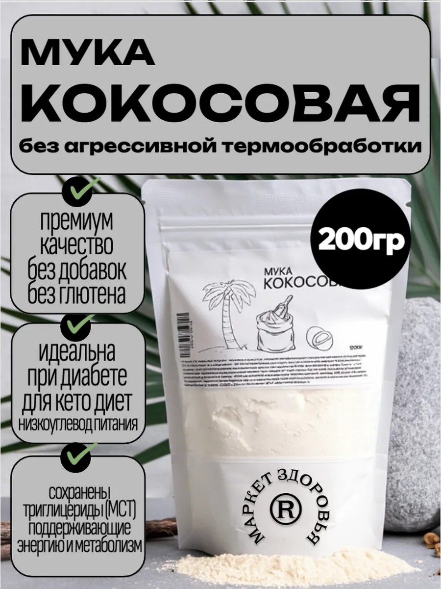 кокосовая мука без глютена без сахара органик 200гр