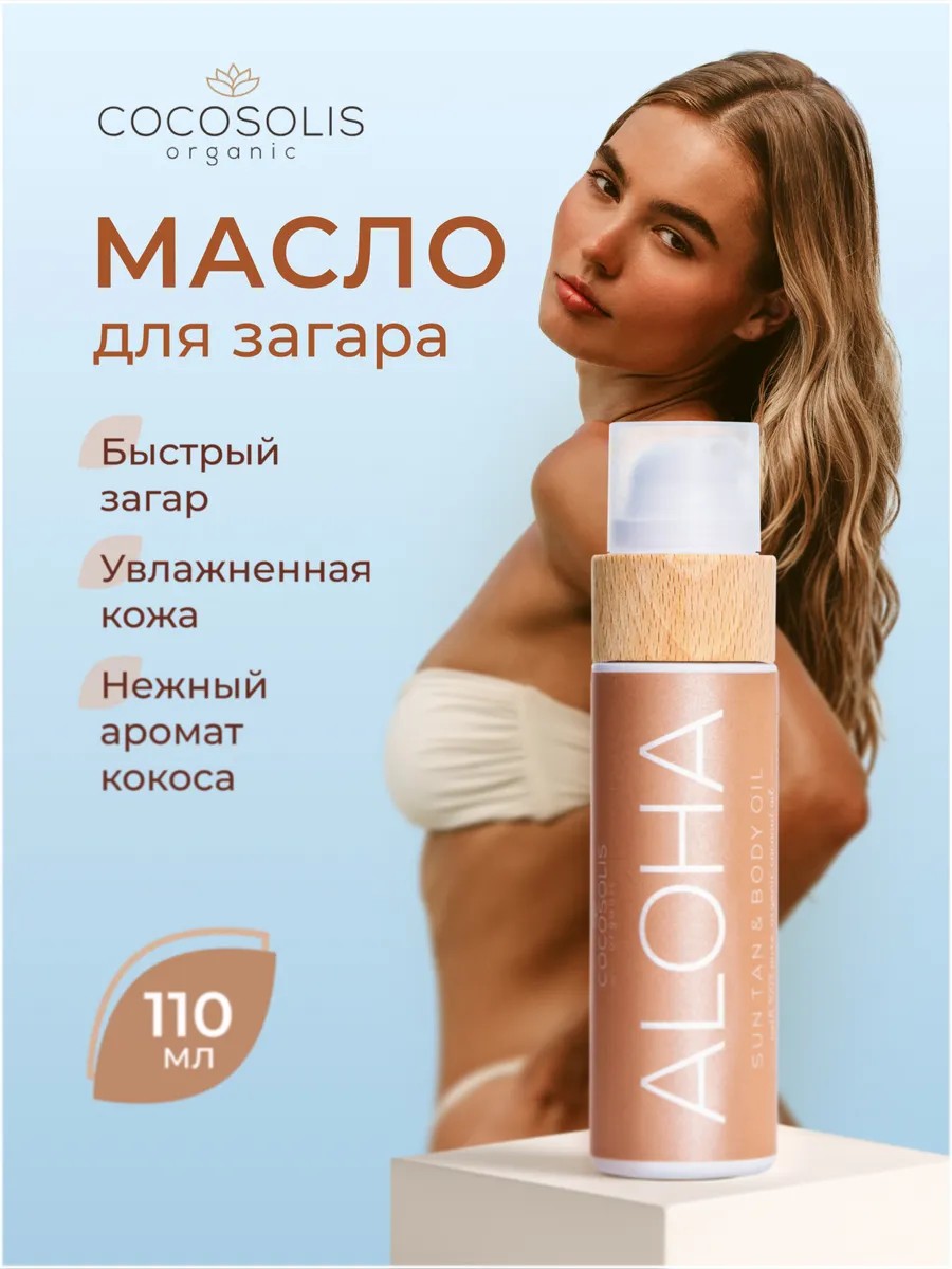 Натуральное сухое био масло для тела COCOSOLIS ALOHA Suntan & Body Oil с нежным ароматом кокоса способствует получению быстрого и насыщенного загара под солнцем или в солярии.