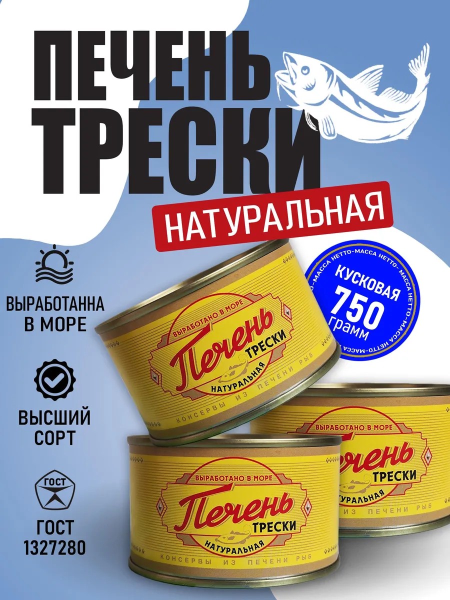 Premium-grade cod liver, produced at sea in accordance with GOST 13272-80, is a natural and nutritious product rich in vitamins A and D, as well as essential omega-3 and omega-6 fatty acids. During sterilization, the liver secretes a natural juice—fish oil—with a pleasant fresh-fish flavor, which can be used as a seasoning for broths, soups, and side dishes. The lump structure makes the product convenient to use, preserving its natural flavor and delicate texture. Cod liver is ideal for preparing gourmet appetizers, pairs beautifully with bread and fresh vegetables, and is also an excellent ingredient for a variety of salads. Thanks to its composition, canned cod liver helps strengthen the immune system, maintain healthy skin, hair, and the cardiovascular system. It is recommended for people of all ages, including pregnant women. The 250g packaging is convenient for storage and use, and the natural composition without artificial additives makes the product an excellent choice for those who value high-quality seafood and healthy eating.