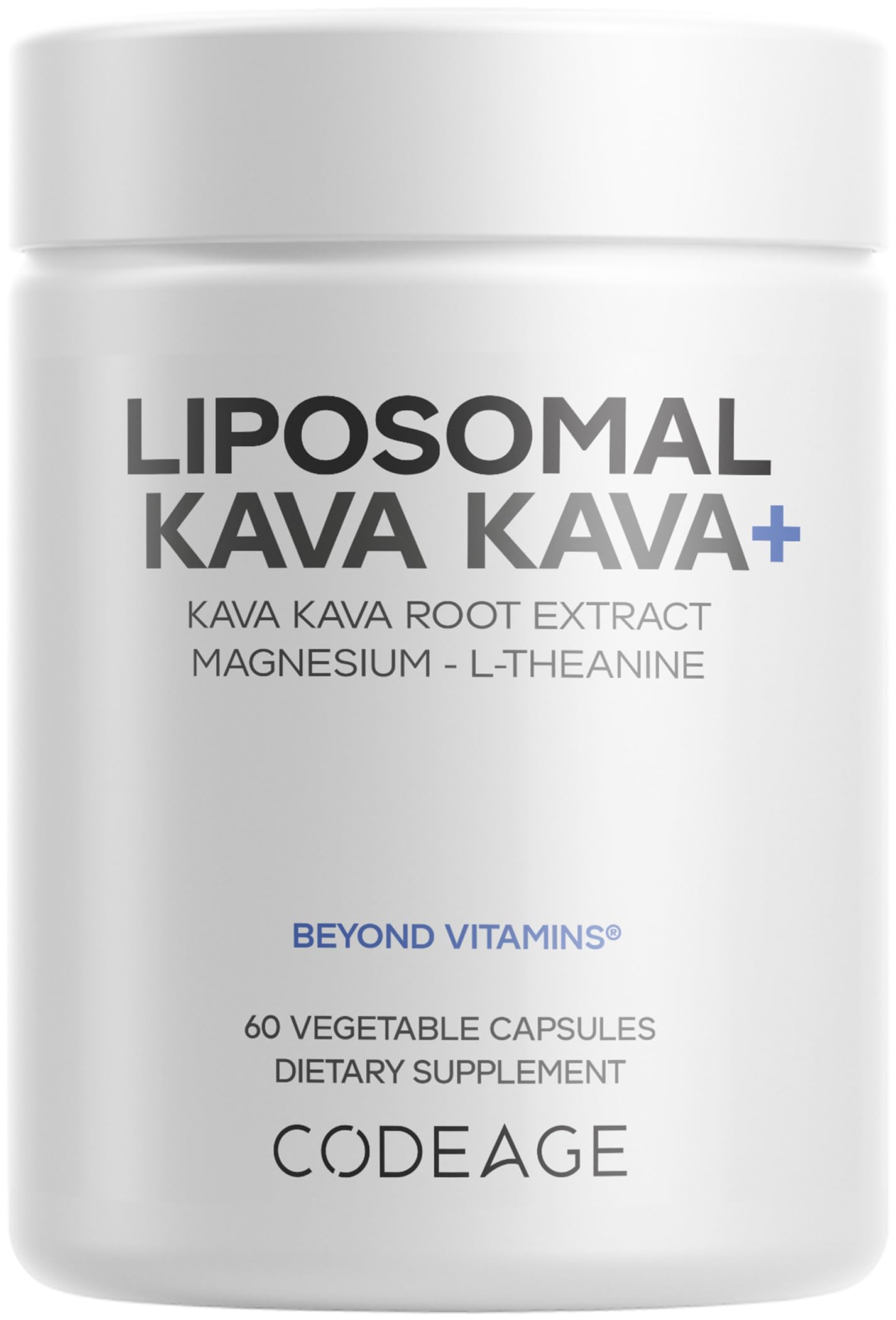 Codeage Liposomal Kava Kava+ Supplement - 500 mg 30% Kavalactones with Magnesium Glycinate - Magnesium Oxide - L-Theanine - Liposomal Delivery - Non-GMO - 60 Capsules