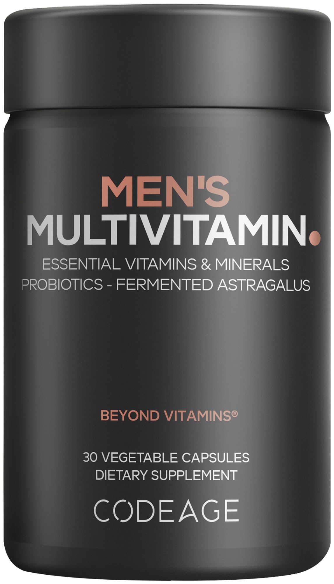 Manufactured in the USA: Codeage Men's Multivitamin is manufactured in the USA in a cGMP-certified facility using global ingredients for quality and purity. Vegan Clean Formula: Codeage multivitamins for men supplement is vegan, non-GMO, dairy-free, soy-free, and gluten-free, catering to various dietary preferences. Probiotic Blend: This daily men's vitamins features 500 million CFU of probiotics, including Lactobacillus acidophilus and Bifidobacterium bifidum. This men's multivitamins and probiotics formula is convenient to use with just 1 capsule per serving. Minerals Nutrients: This daily multivitamin for men formula also provides important minerals like magnesium, zinc, iron, and selenium, along with chromium and probiotics for overall support. This advanced men blend offers astragalus root extract. Comprehensive Vitamin Blend: Codeage Men's Multivitamin includes essential vitamins A, C, D3, E, and B12 to help support a balanced nutritional profile for daily wellness.