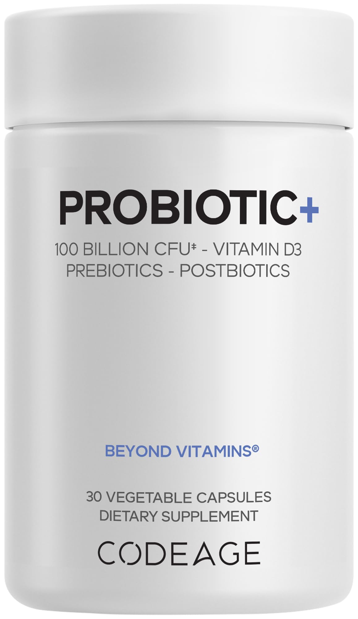 Codeage Probiotic+ 100 Billion CFU Supplement - 12-Strain Probiotic Blend Organic Prebiotic Fiber Postbiotics Vitamin D3 Zinc Bisglycinate Quercetin - for Men & Women - Non-GMO- 30 Capsules