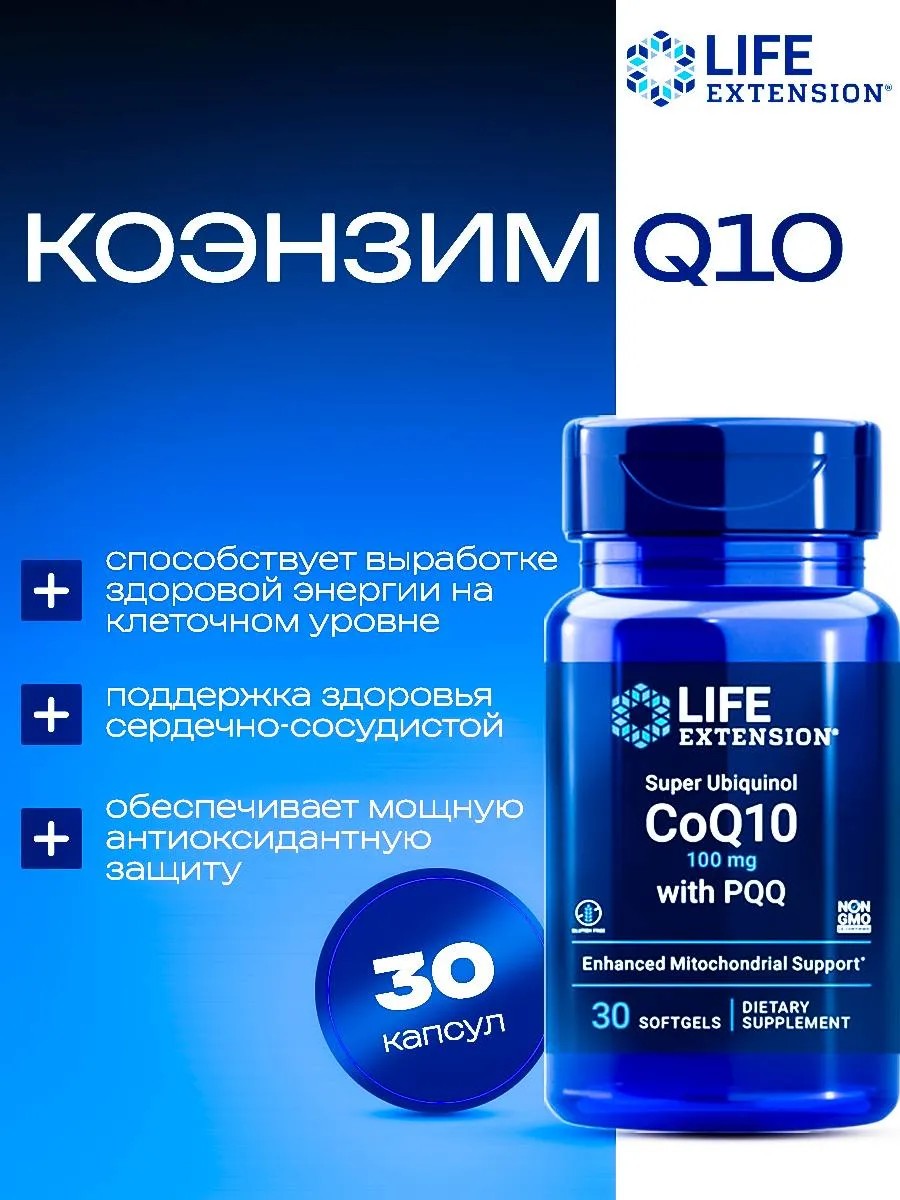 Life extension Коэнзим Q10 100 мг убихинол с пирролохинолинхинон Life Extension Super Ubiquinol CoQ10 100 мг with PQQ 10 мг, 30 капсул