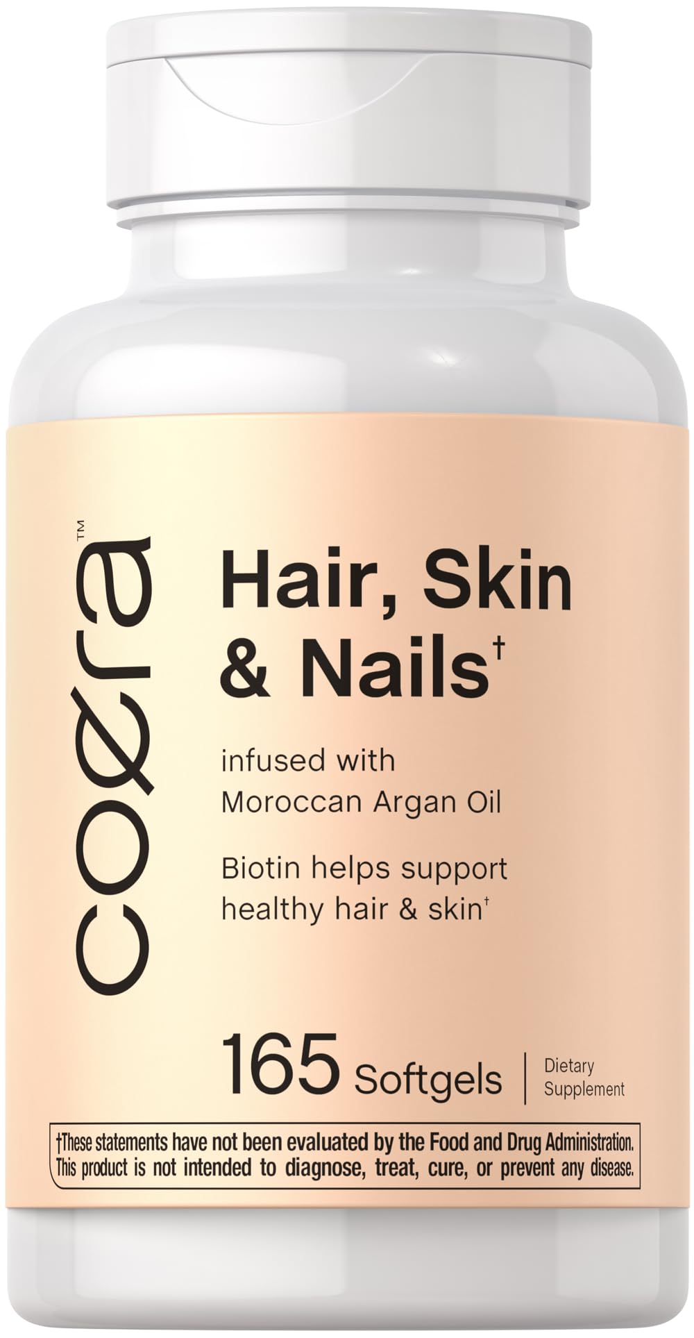 Coera Hair Skin and Nails Vitamins with Collagen Biotin & Moroccan Argan Oil | 165 Softgels | Non-GMO & Gluten Free Supplement for Men and Women
