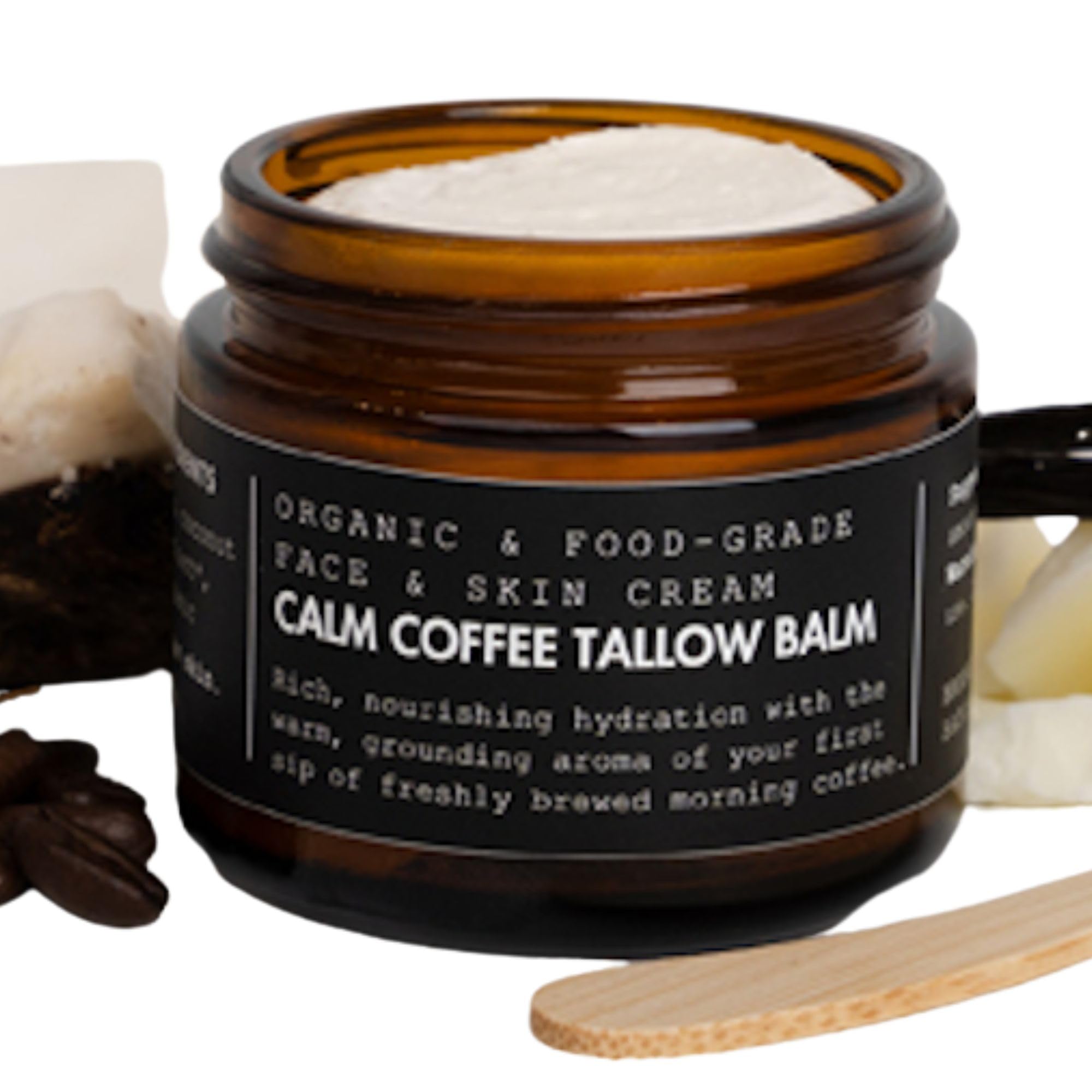 Calm Coffee Tallow Balm is crafted with real organic coffee and zero synthetic fragrance. We slowly infuse organic coffee into organic MCT coconut oil, then blend it with grass-fed tallow and coconut oil. No fillers, only antioxidant-rich ingredients to gently awaken skin.