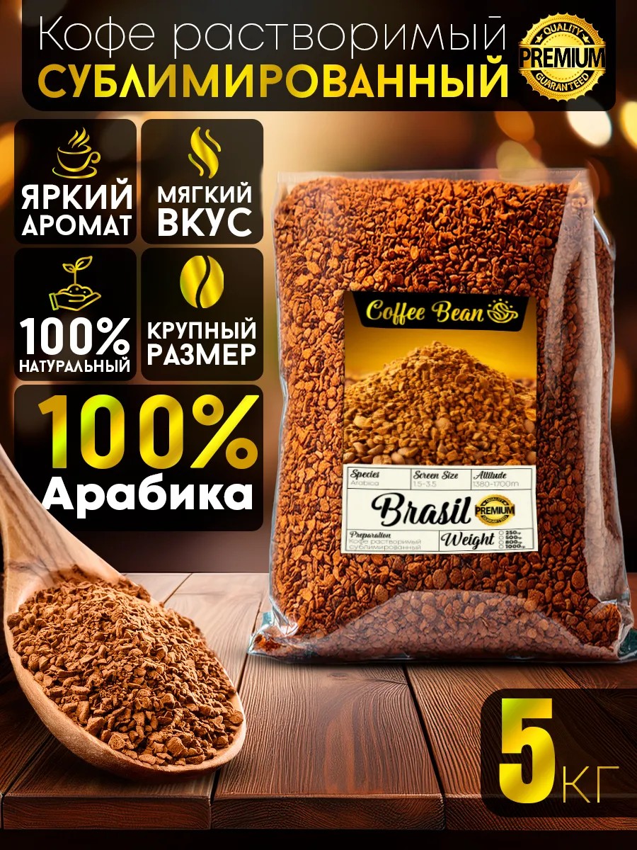 Растворимый кофе давно стал неотъемлемой частью повседневной жизни, а сублимированный кофе особенно ценится за богатый вкус и сохранение натурального аромата. Мы предлагаем кофе растворимый сублимированный 5 кг премиального качества под брендом Coffee Bean. Для его производства используется исключительно 100% арабика из солнечной Бразилии – страны, которая славится своими кофейными плантациями и мягким климатом, идеально подходящим для выращивания зерен.