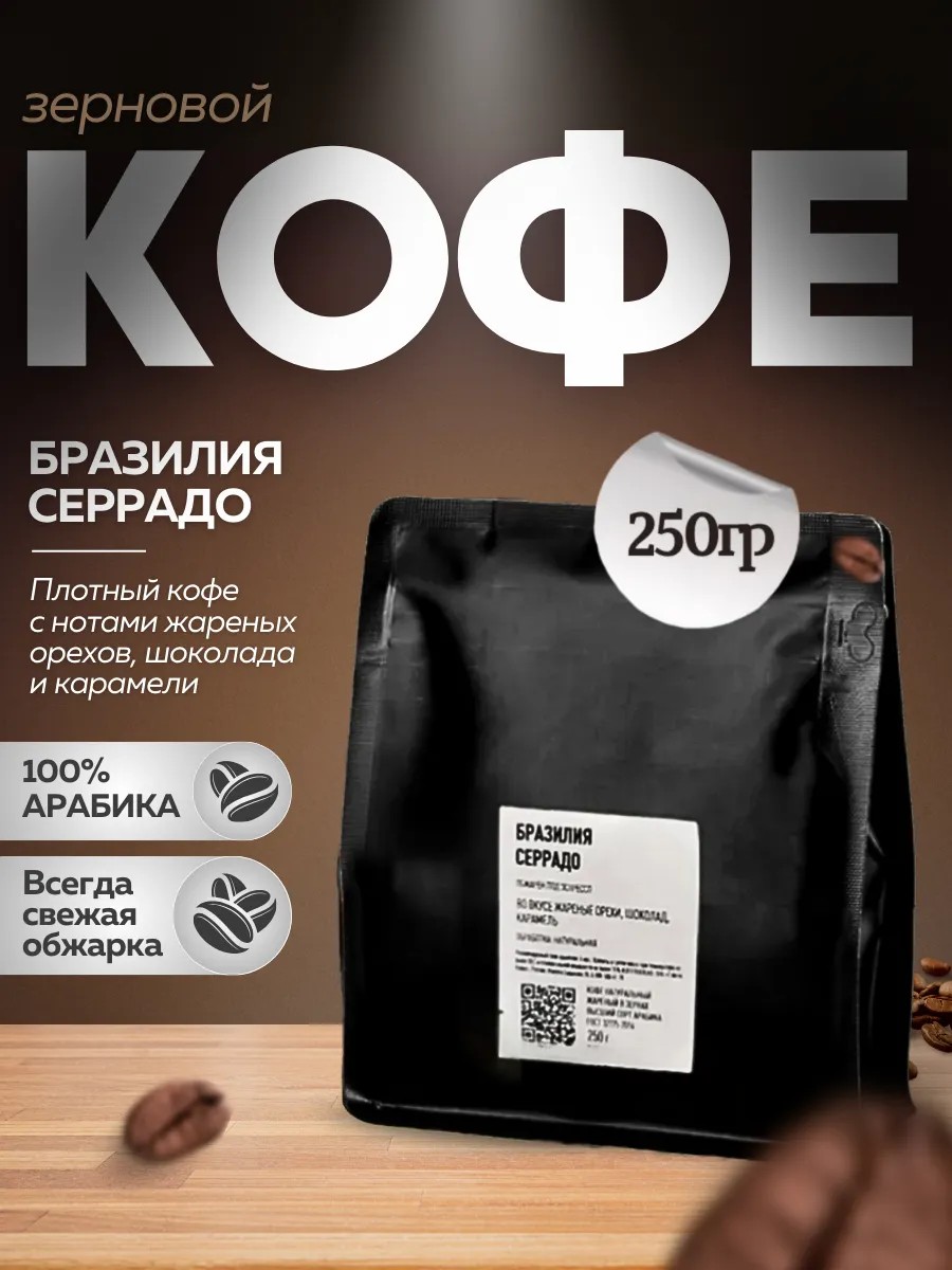 Кофе Бразилия Серрадо в зернах 250 грамм. Обжарка 12.09.2025