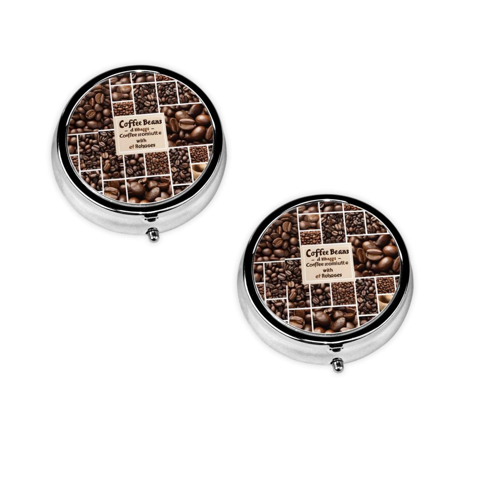 (Coffee Collage) Round Pill Box 3 Compartment Pill Box Mini Decorative Pocket Purse Portable Travel Medicine Tablet Vitamin Holder Organizer Pill Case