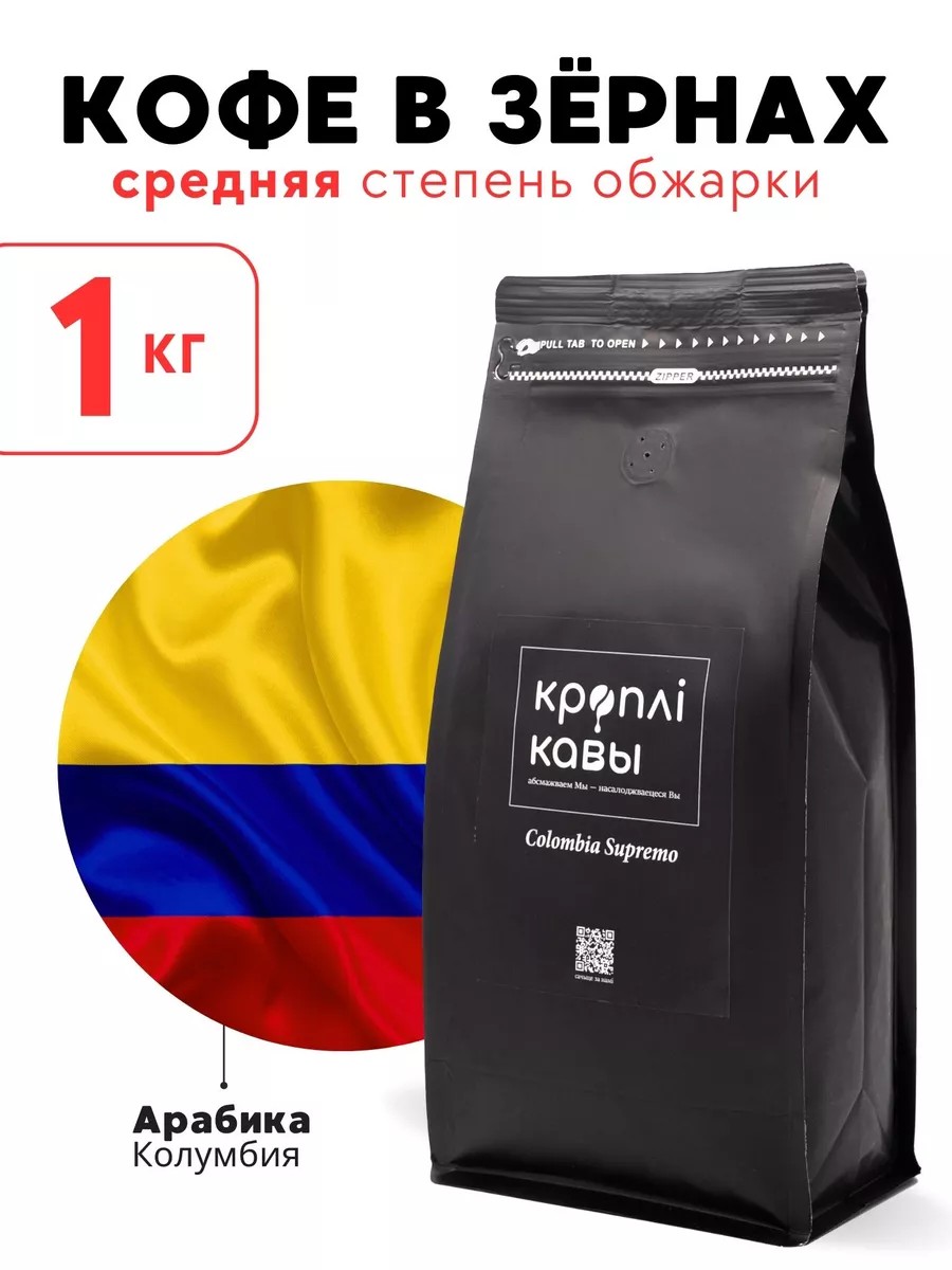 Кроплі Кавы Кофе в зернах Колумбия Супремо 1 кг