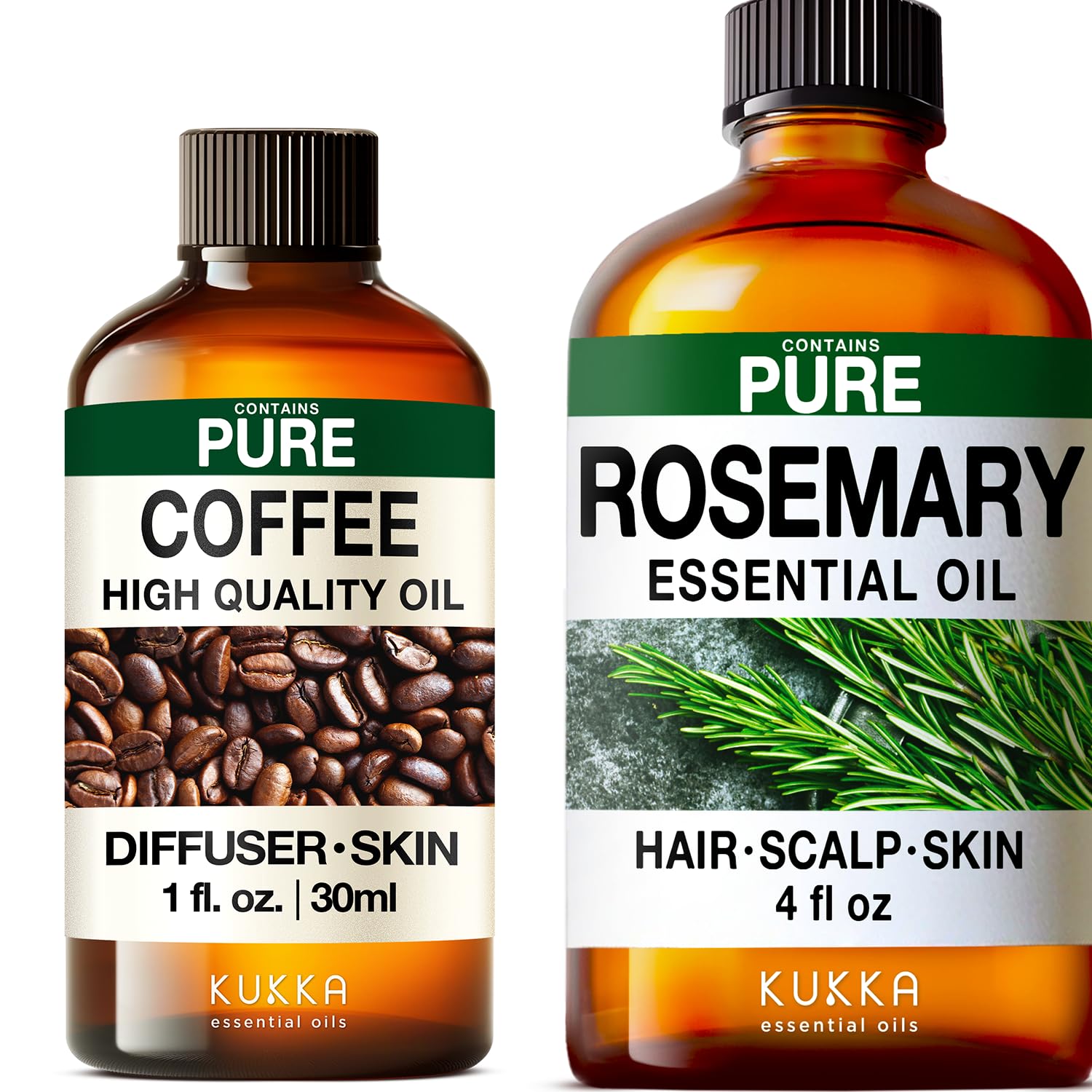 Coffee Essential Oil for Diffuse & Rosemary Essential Oil for Diffuser Set - Aromatherapy Grade Essential Oils Set - 2X 4 Fl Oz - Kukka