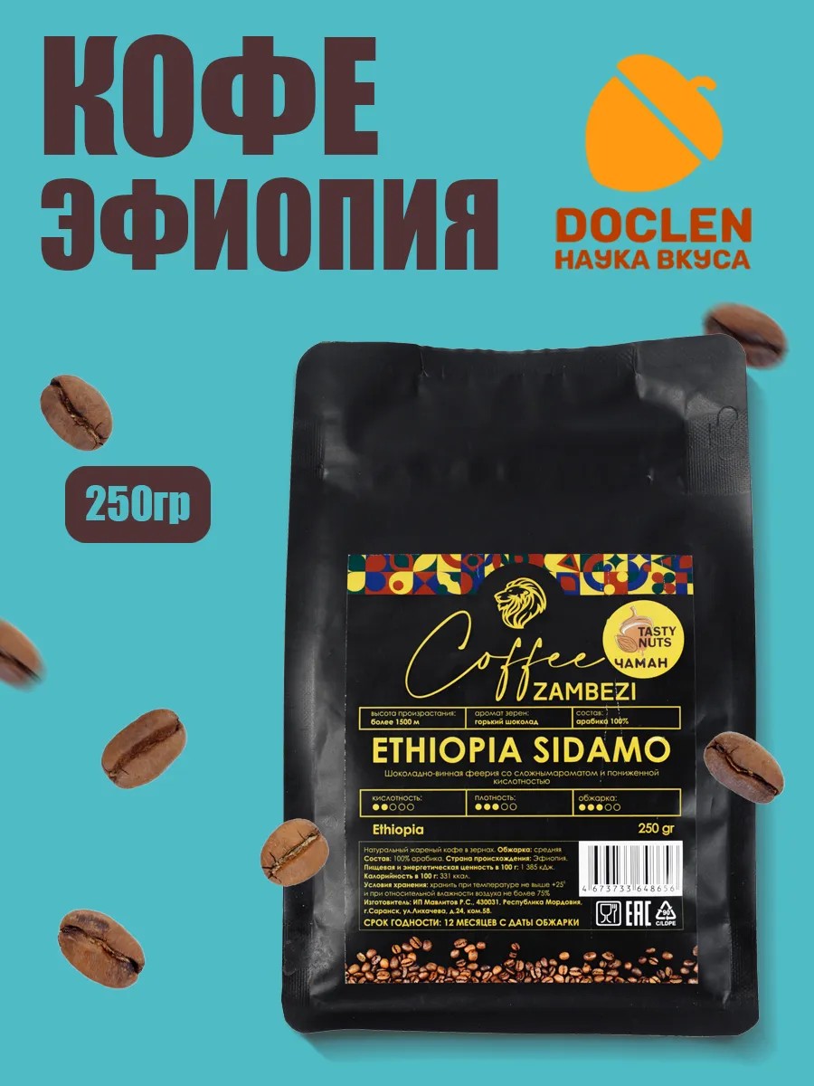 ETHIOPIA Кофе в зернах 250гр – натуральный зерновой кофе премиум из Эфиопии (Африка).