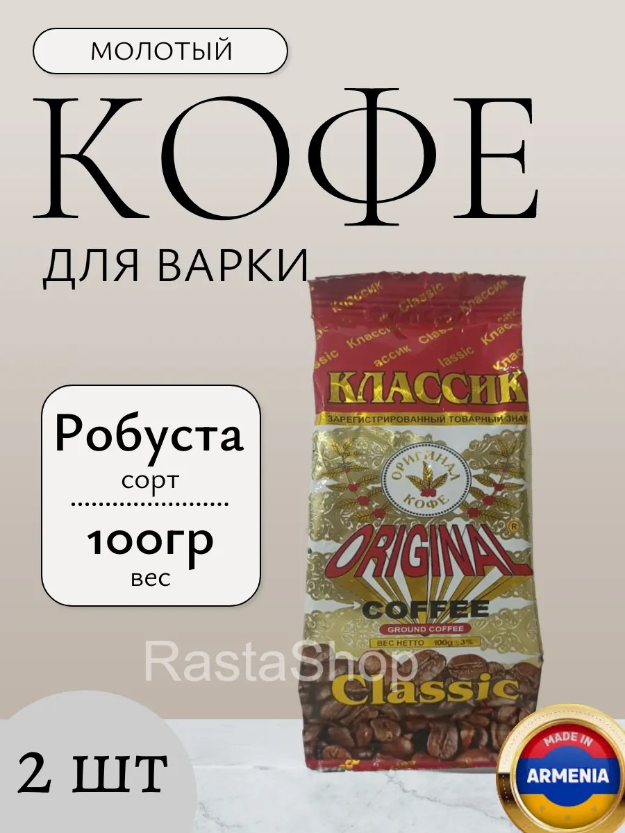 Classic Original ground coffee is the ideal choice for lovers of a rich and invigorating taste. This 100% Robusta coffee will give you a boost of energy for the entire day. Its rich aroma and full-bodied flavor are fully revealed when prepared in a Turkish coffee pot, creating the unique atmosphere of an Eastern ritual. This coffee is made from Robusta beans grown in various parts of India. Preparation: Add sugar and water to one spoon of ground coffee and bring to a boil. Two 100-gram packages will allow you to enjoy your favorite drink for a long time.