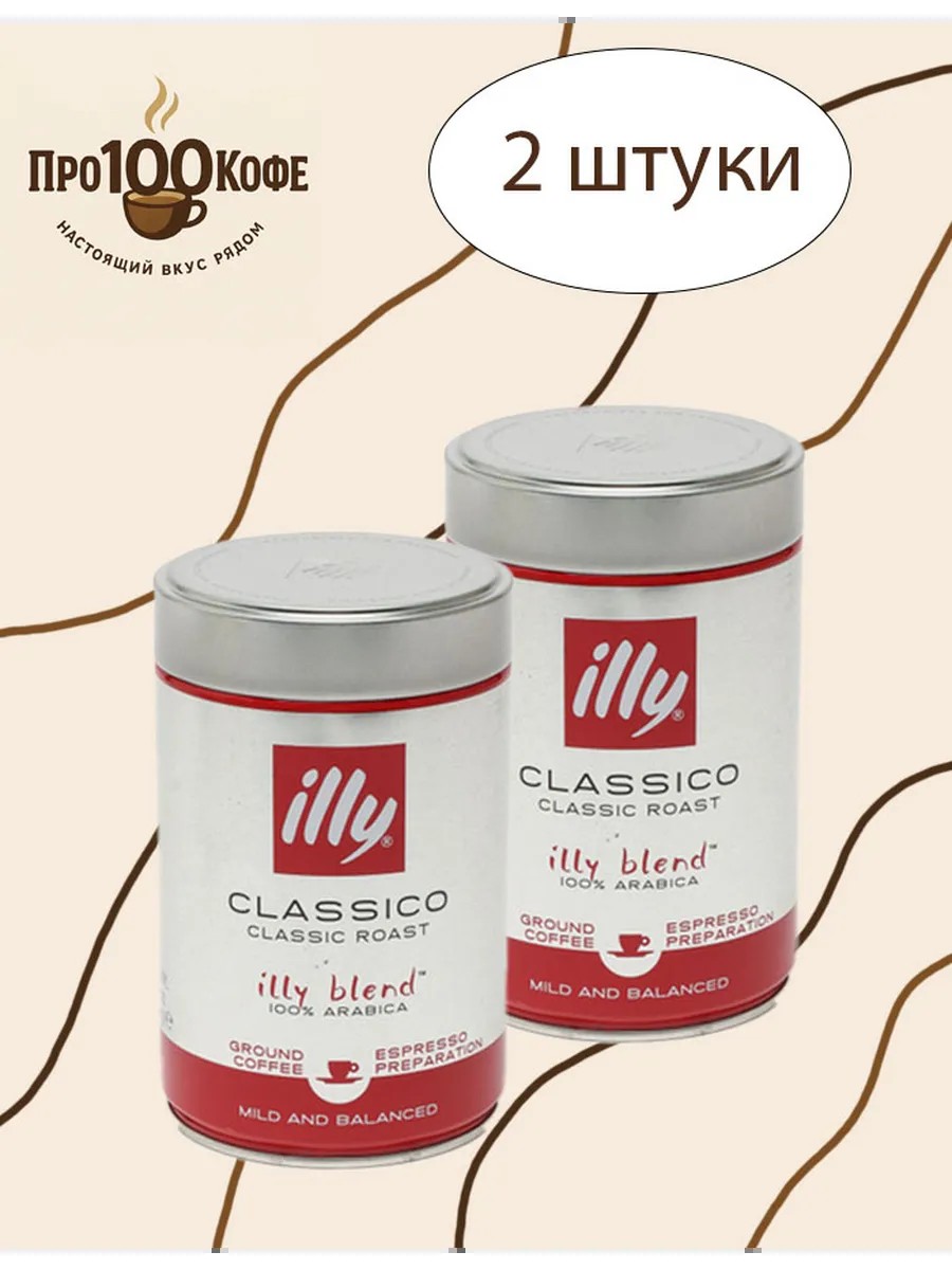 illy Кофе молотый Илли Классик в железной банке, 250г 2 штуки