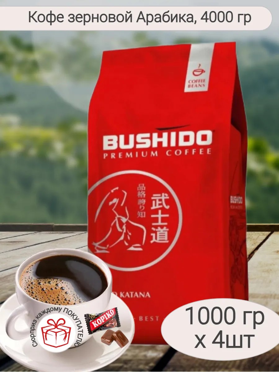 Bushido Кофе в зернах Бушидо Red Katana, Арабика, 1 кг х 4шт