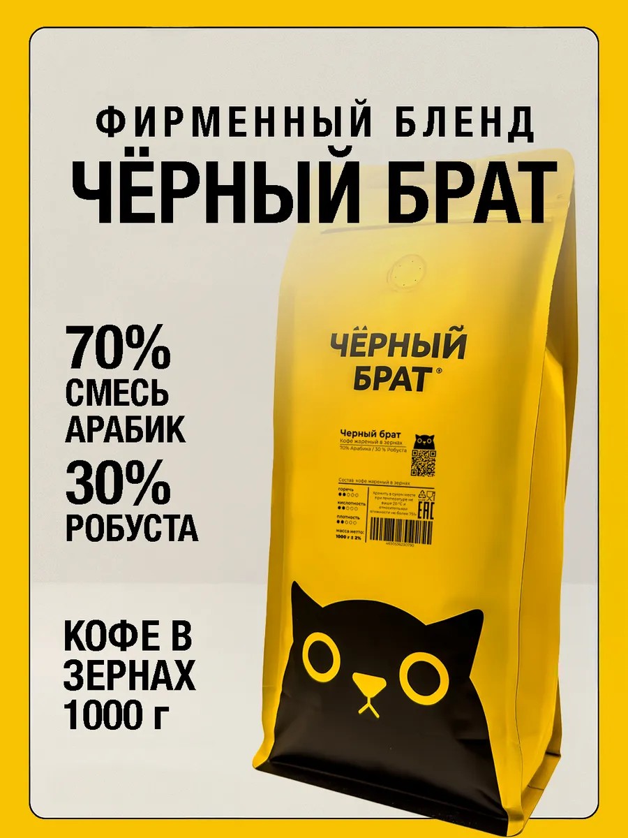 Чёрный Брат Кофе в зернах 1 кг Черный Брат арабика робуста