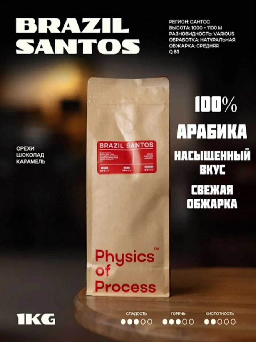 Зерновой кофе Бразилия Сантос 1 кг — отборные зерна арабики средней обжарки. Насыщенный напиток с ярким ароматом, мягким вкусом и деликатными нотками фундука и какао, без добавок и ароматизаторов. Свежеобжаренный кофе в зернах станет идеальным выбором для ценителей натурального аромата и глубокого, сбалансированного вкуса. Благодаря тщательному отбору лучших сортов арабики и оптимальной обжарке каждая чашка раскрывается яркими нотами свежести и приятной сладостью орехово-шоколадного оттенка. Кофе обладает идеально ровной формой, приятным бархатистым вкусом и продолжительным послевкусием, надолго оставляя приятные впечатления. Подходит для приготовления в автоматических и рожковых кофемашинах, капельной кофеварке, турке, френч-прессе. Благодаря трехслойному пакету с воздушным клапаном вкус и аромат сохранится надолго. Хранить кофе в зернах рекомендуем при температуре до 25 градусов, избегать попадания воздуха, тепла и света. Наслаждайтесь бодрящим ароматом и неповторимым вкусом бразильского кофе!
