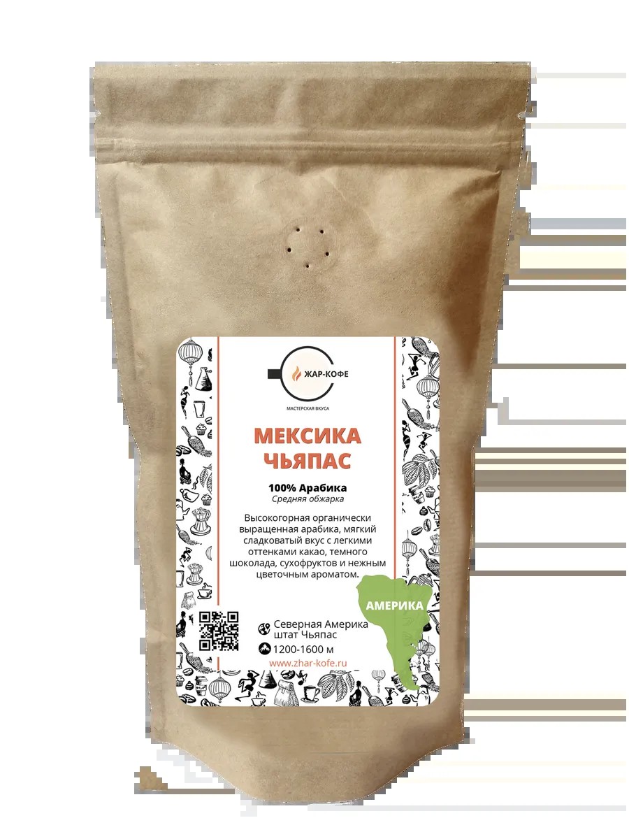 Кофе в зернах Мексика Чьяпас (100% арабика) - 250 гр.