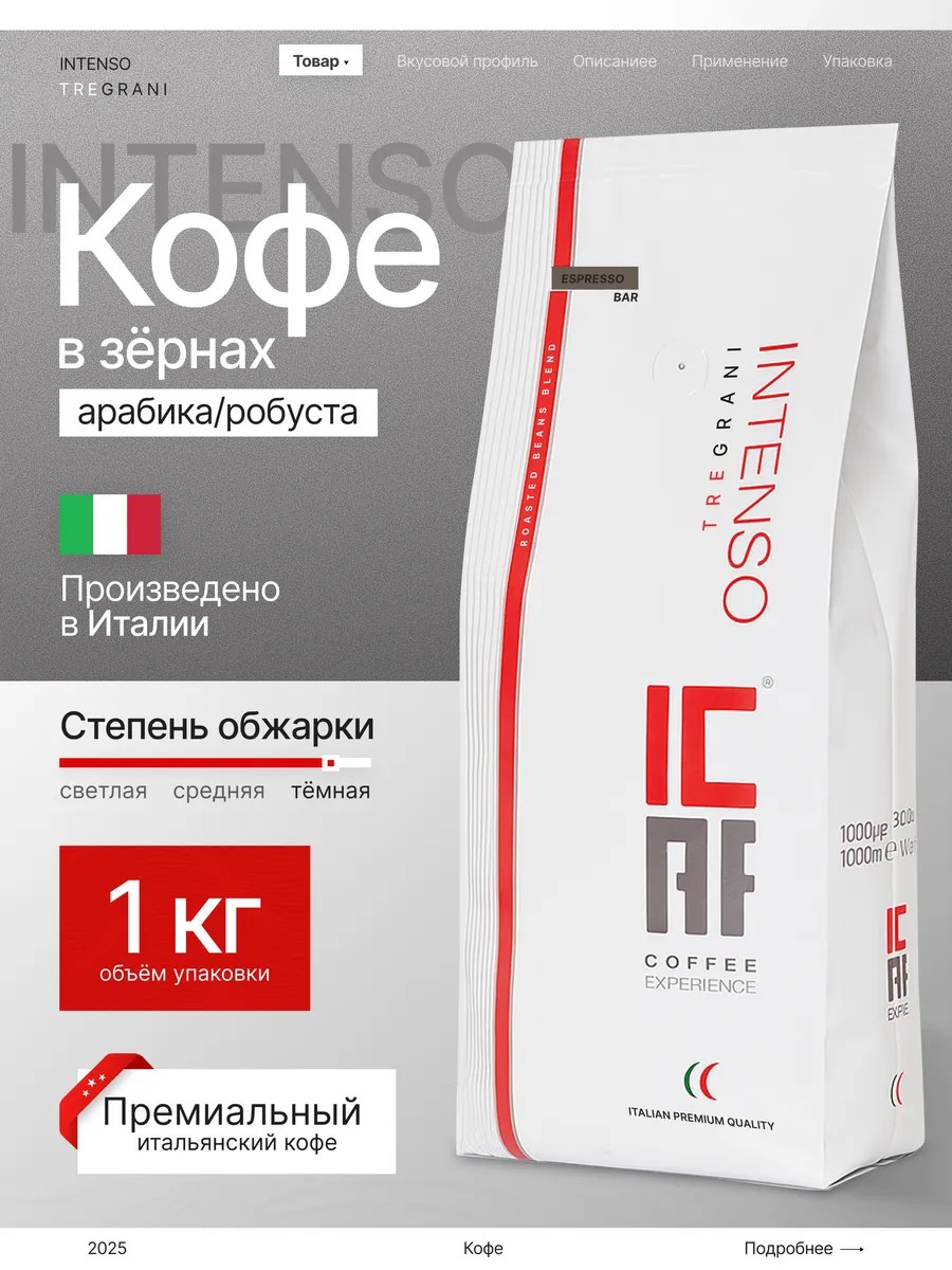 Кофе в зёрнах ICAF Intenso 1 кг- идеальный выбор для истинных ценителей кофе.