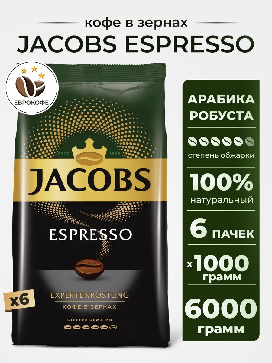 jaCobs Кофе в зернах Якобс Espresso 1кг, 6шт.