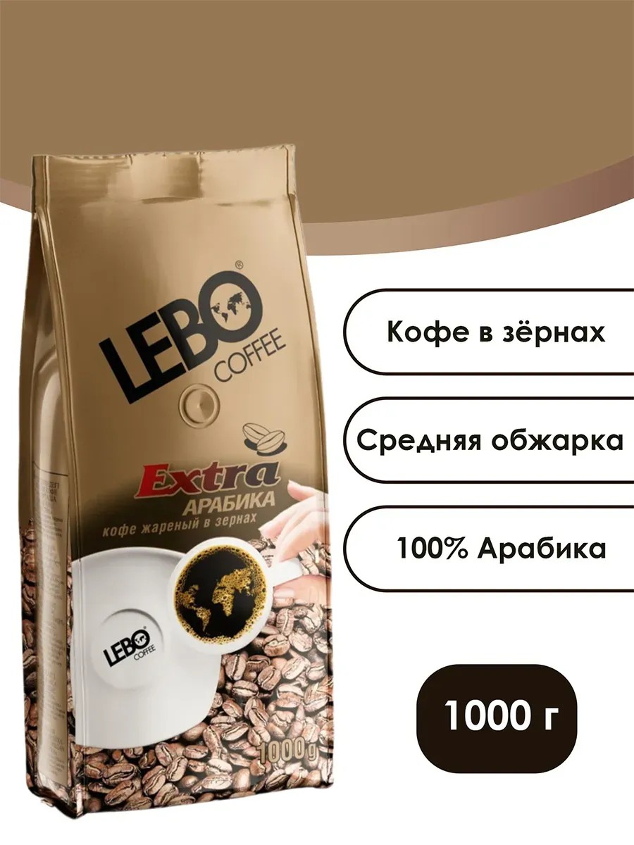 Кофе LEBO Extra ― это отборные сорта Арабики с плантаций Центральной, Южной Америки и Индии. Зерна средней степени обжарки идеальны для приготовления кофе в турке и классических рецептов.