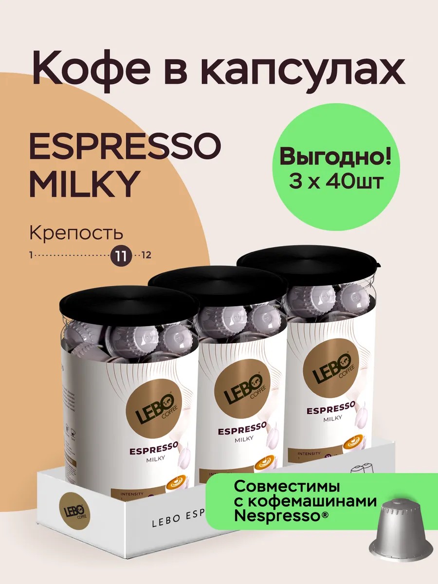 Lebo Кофе в капсулах MILKY Арабика 120 шт. Nespresso, ЛЕБО