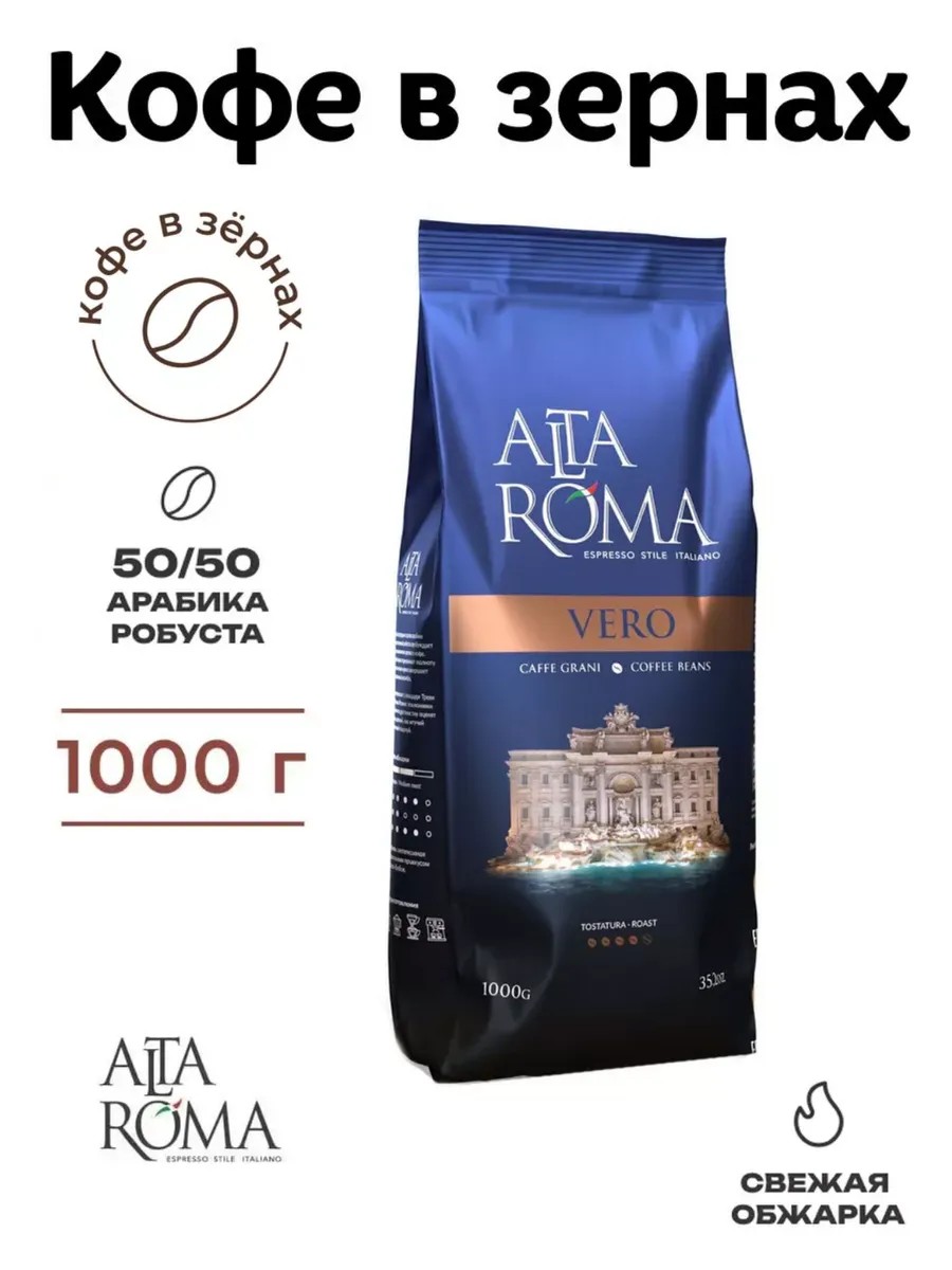 Упаковка кофе в зернах Alta Roma Vero имеет вес 1 кг, что позволяет вам наслаждаться этим великолепным напитком на протяжении длительного времени.