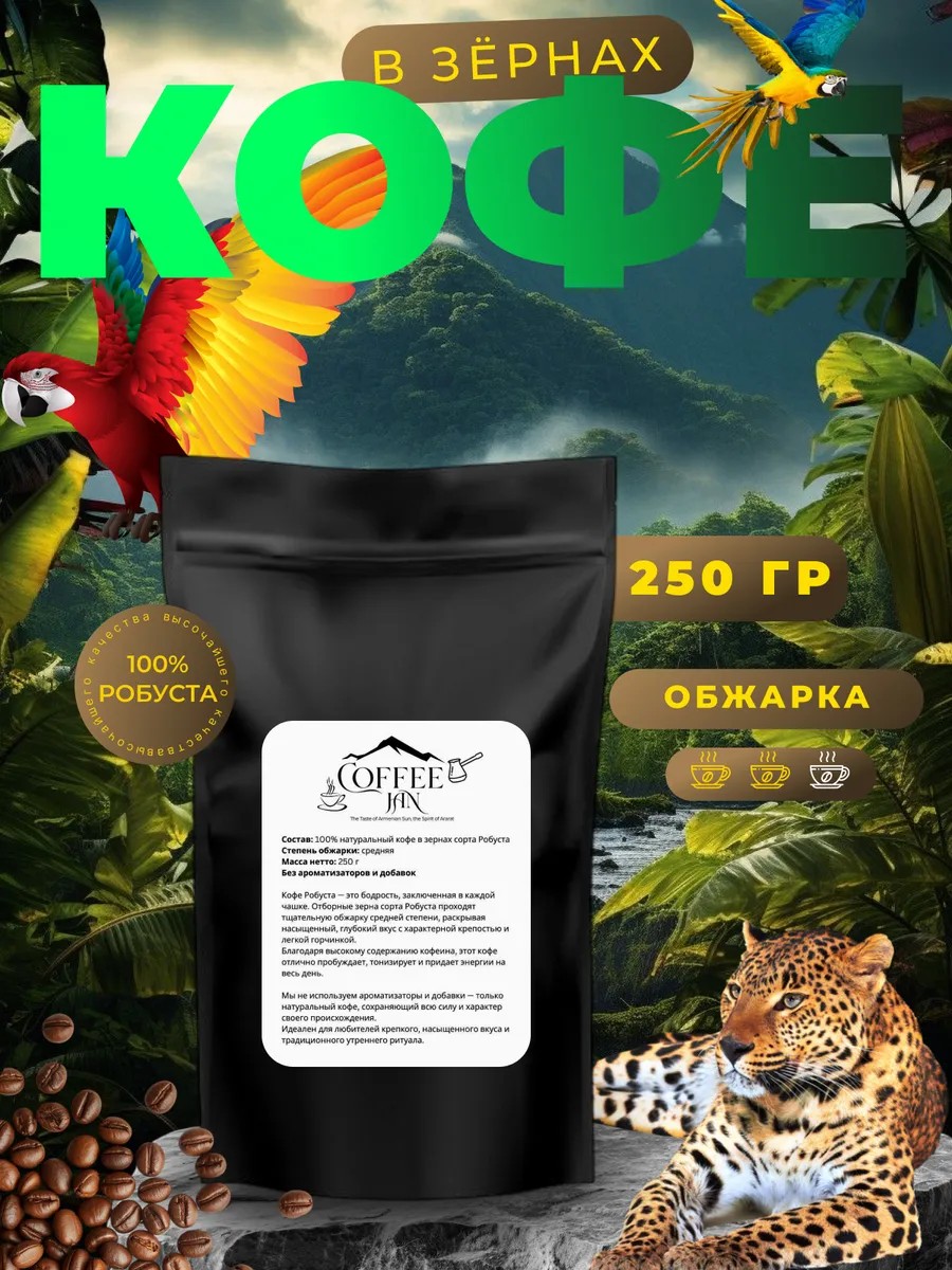 CoFFee JaN Кофе в зернах Бразилия 100% Робуста 250 г