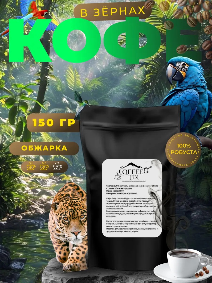 CoFFee JaN Кофе в зернах Бразилия 100% Робуста 150 г