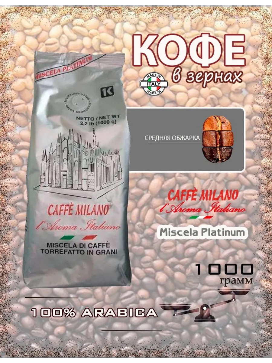 Кофе в зёрнах Caffe Milano Miscela Platinum – это утончённое выражение итальянского кофейного мастерства, созданное специально для тех, кто ценит 100% арабику и её тонкий, многослойный вкус. Эта премиальная смесь производится из отборных зерен, выращенных на высокогорных плантациях в идеальных климатических условиях, где каждая ягода впитывает максимум природной энергии и аромата.