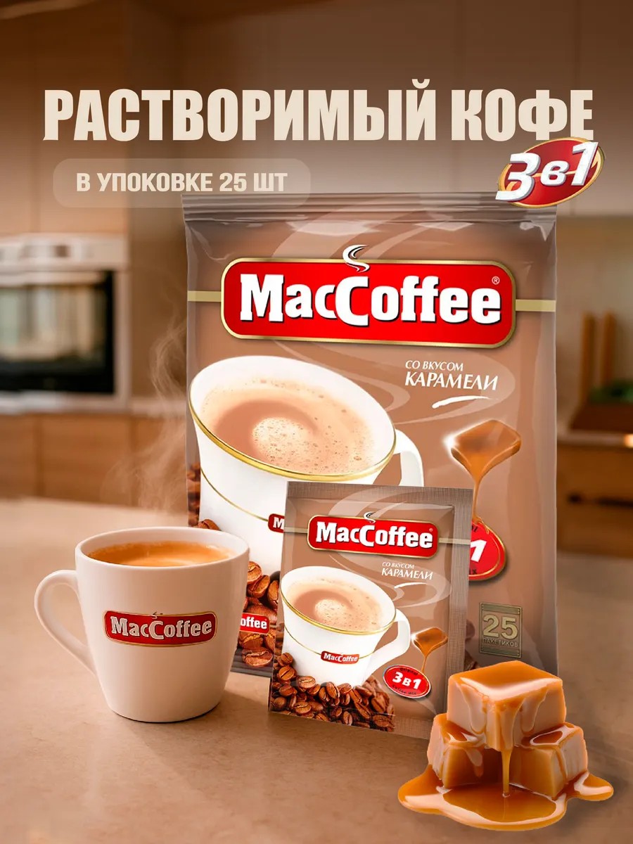 КомплектацияКофе MacCoffee Карамель 3в1 25шт.