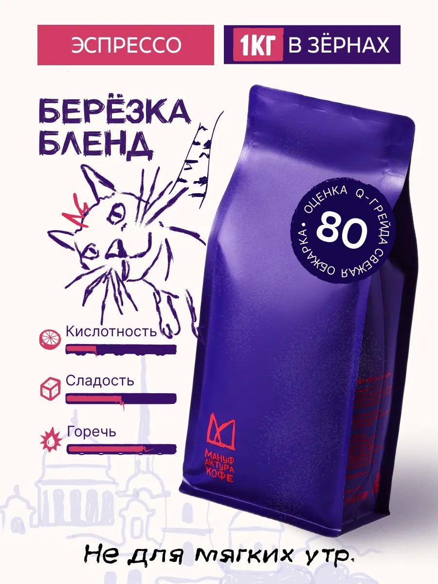 Мануфактура Кофе Кофе в зернах Берёзка бленд 1 кг смесь арабики и робусты