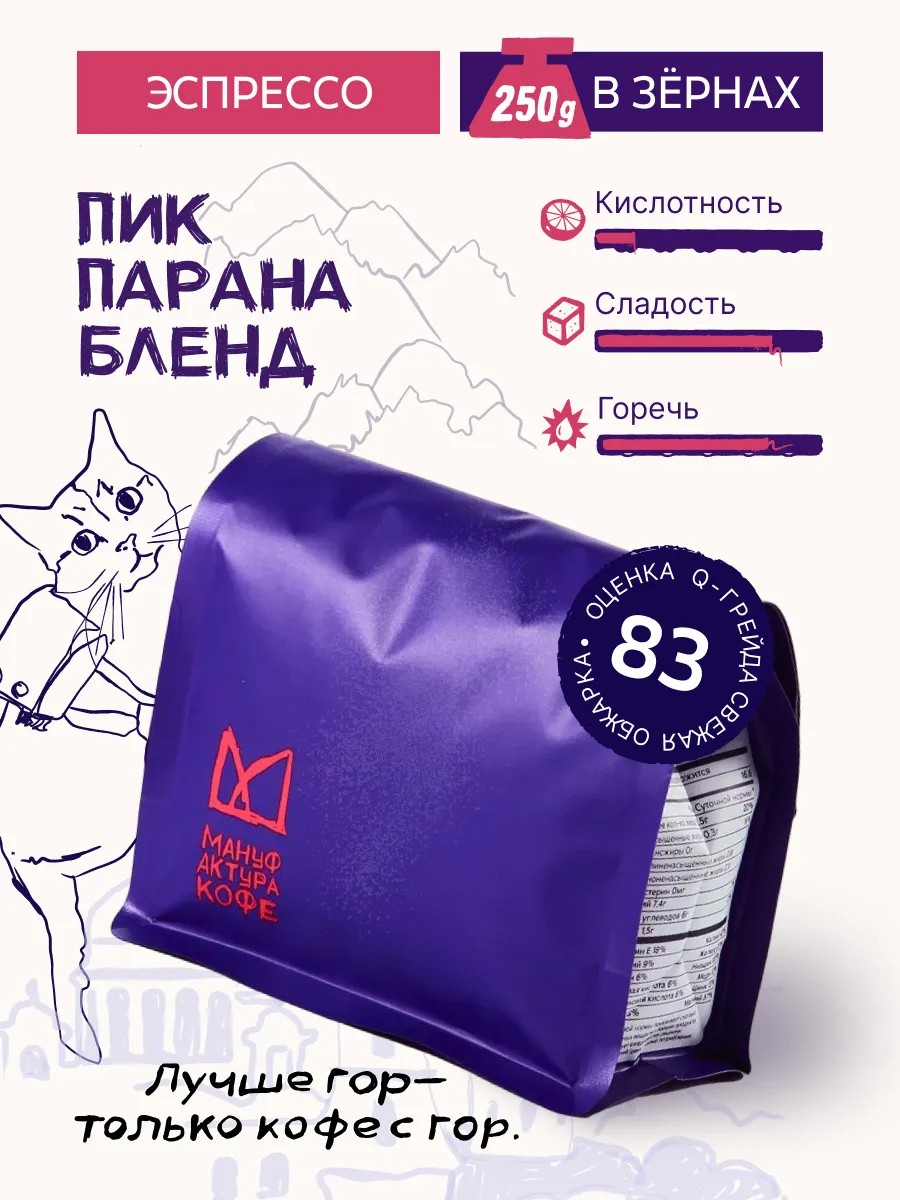 Мануфактура Кофе Кофе в зернах Пик Парана бленд арабика робуста 250 г